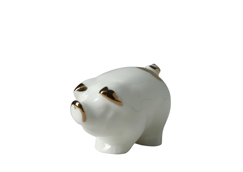 Представляем вашему вниманию скульптуру «Кабан золотой» Татьяны Линчевской, ведущего скульптора Императорского фарфорового завода. Изделие выполнено из костяного фарфора, расписано вручную и декорировано золотом. Согласно восточным традициям, кабан является символом успеха.