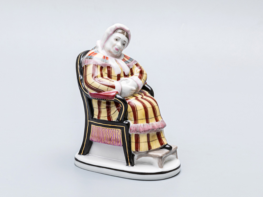 Скульптура ф. Коробочка изготовлена на Императорском фарфоровом заводе из твердого фарфора с применением только ручной росписи. Автор формы - Воробьев Б.Я. Высота изделия - 121 мм.