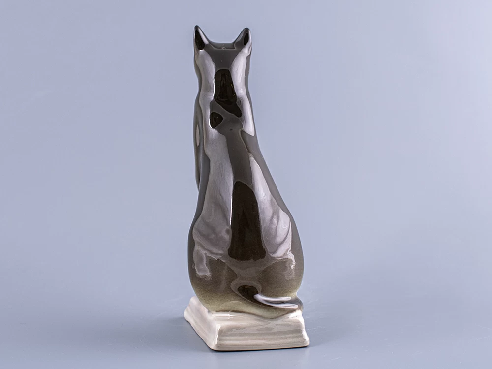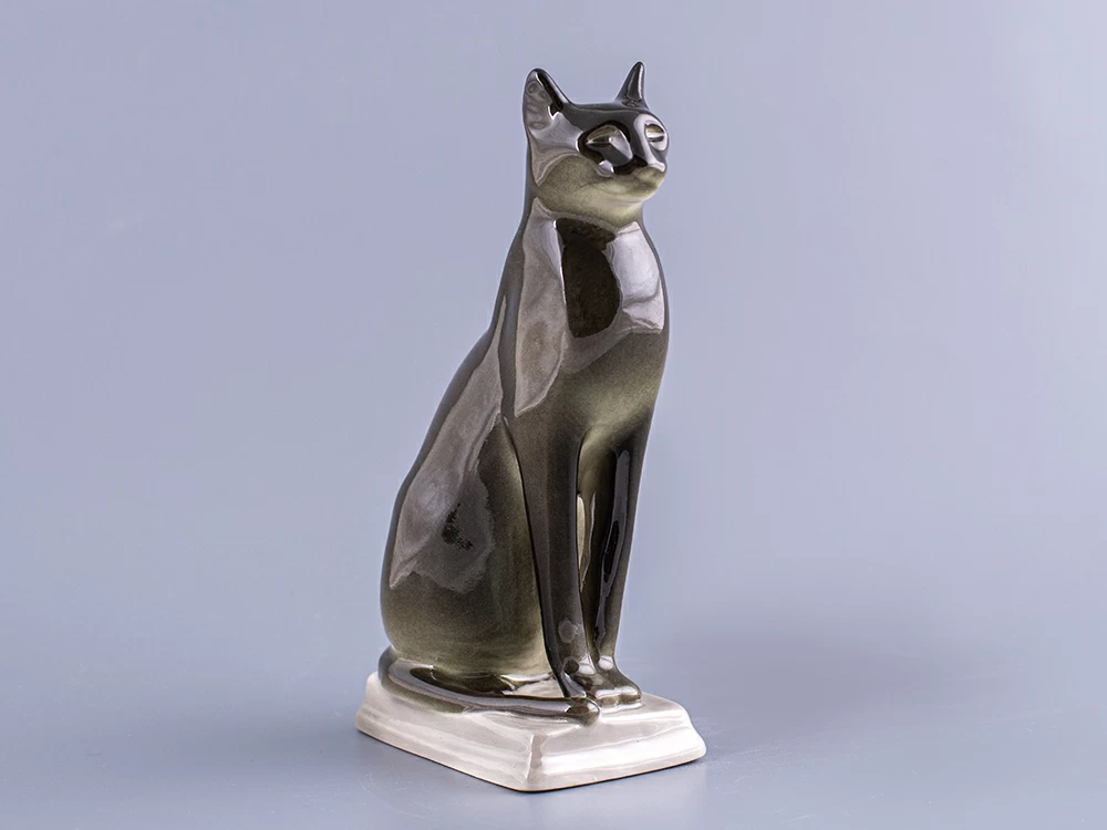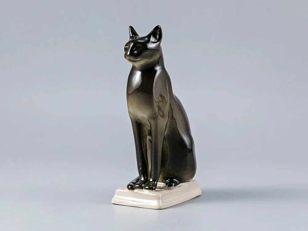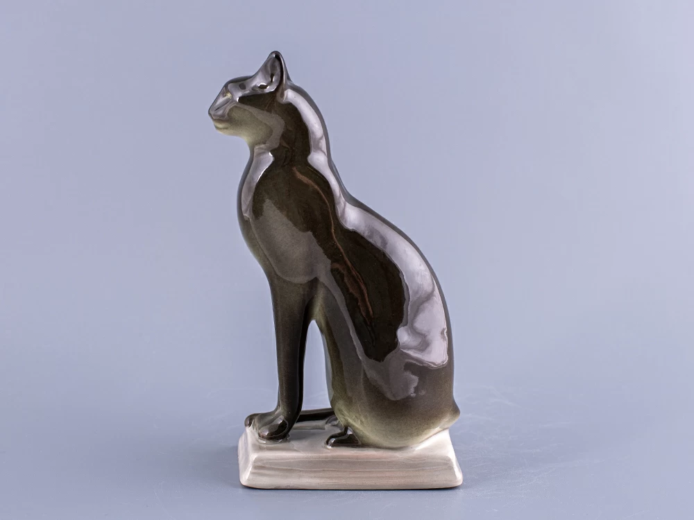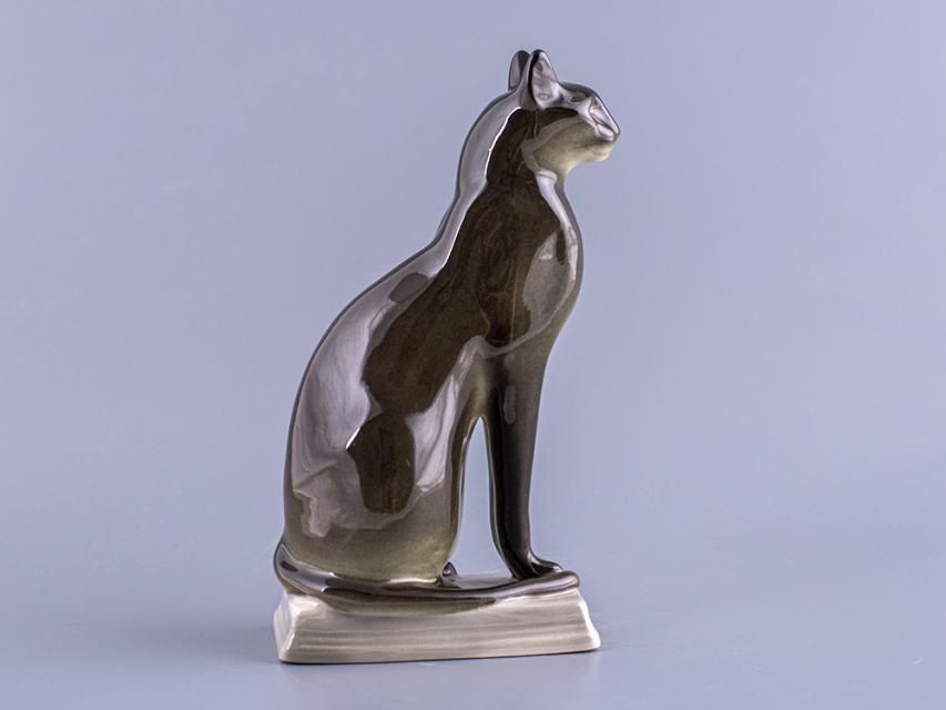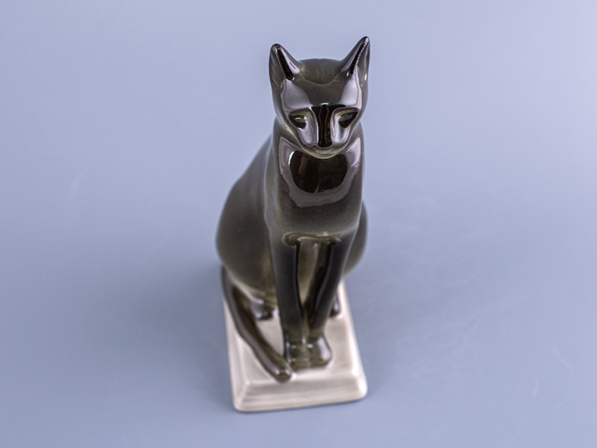 Скульптура Кошка египетская изготовлена на Императорском фарфоровом заводе из мягкого фарфора в технике ручной подглазурной росписи. Высота скульптуры - 162 мм.