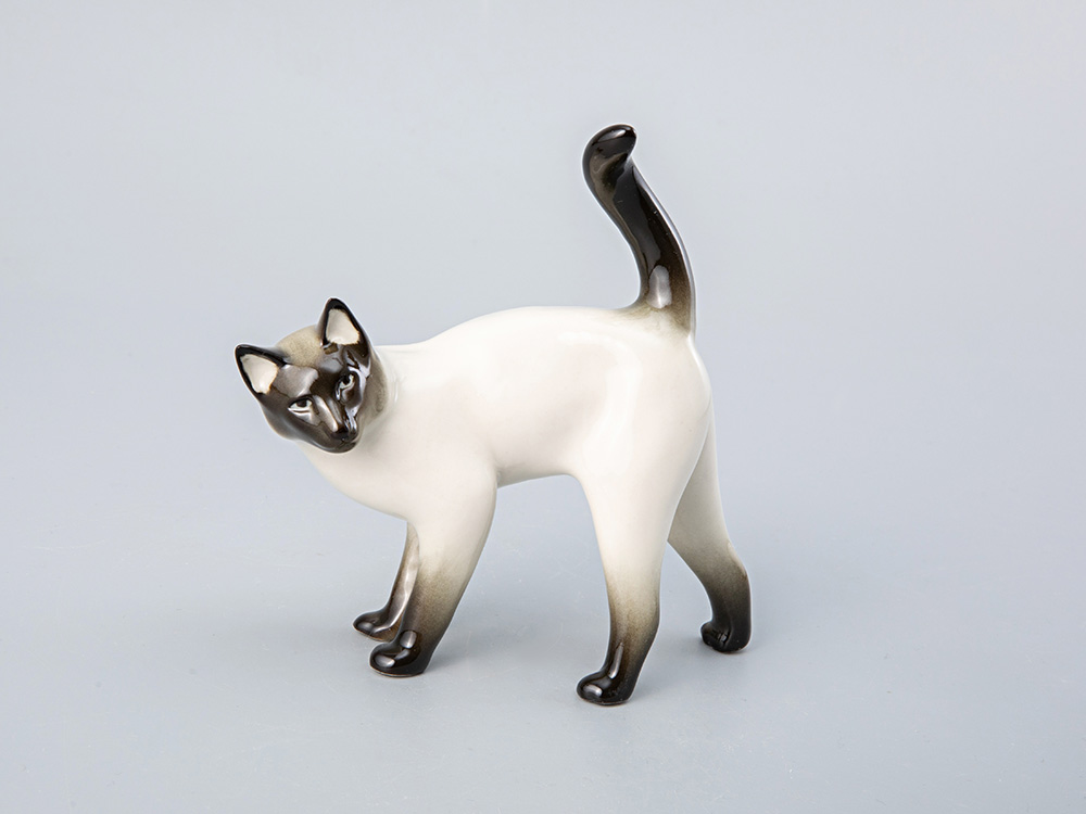 Скульптура Кошка сиамская изготовлена на Императорском фарфоровом заводе из мягкого фарфора в технике ручной подглазурной росписи. Автор формы - Ризнич И.И. Высота скульптуры - 13,3 см.