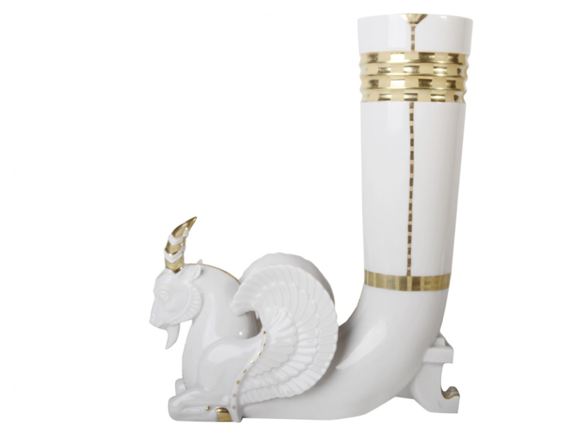 Прообразом фарфорового ритона (древняя форма сосуда в виде рога со скульптурным изображением животного или мифического существа) Анны Трофимовой явился серебряный ритон с изображением крылатого козла эпохи Ахеменидов (V в. до н.э.)