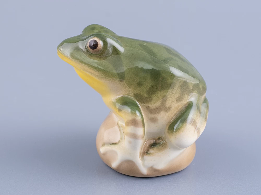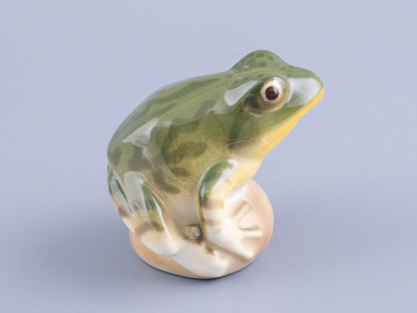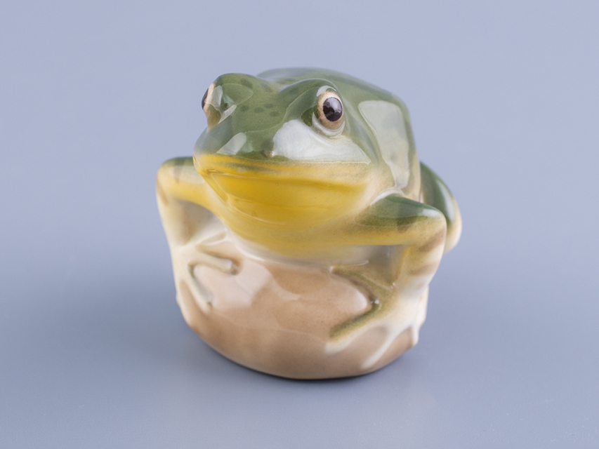 Скульптура Лягушка прудовая изготовлена на Императорском фарфоровом заводе из мягкого фарфора в технике ручной подглазурной росписи. Автор формы - Никольская М.Ю. Высота скульптуры - 65 мм.
