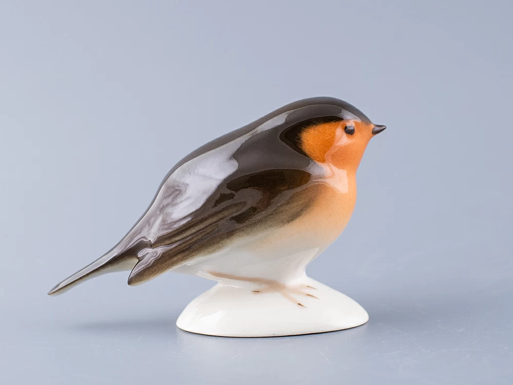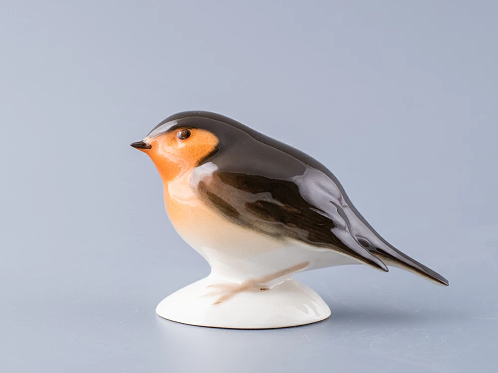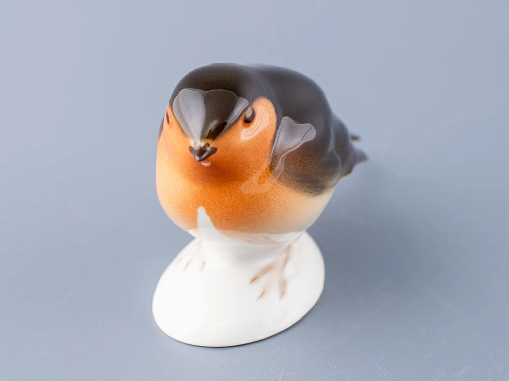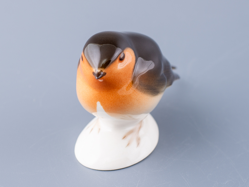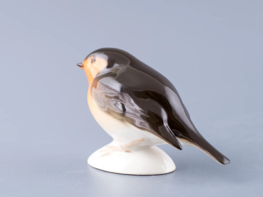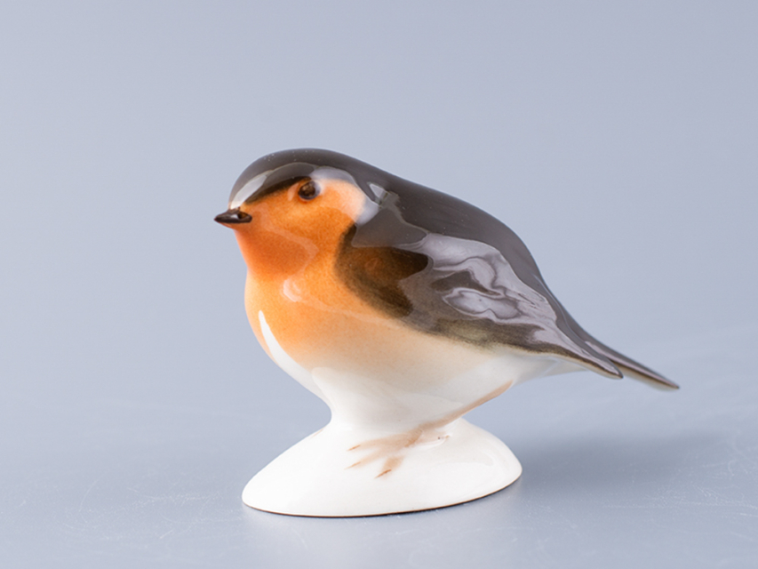 Скульптура Малиновка большого размера изготовлена на Императорском фарфоровом заводе из мягкого фарфора в технике ручной подглазурной росписи. Автор формы - Веселов П.П. Высота скульптуры - 87 мм.