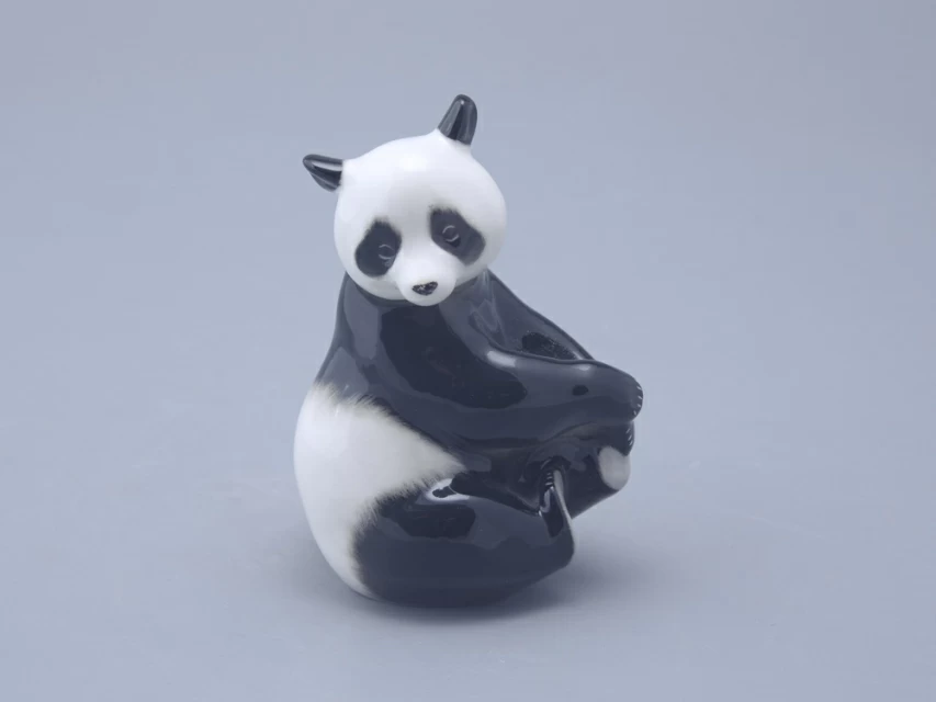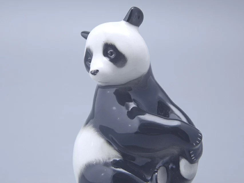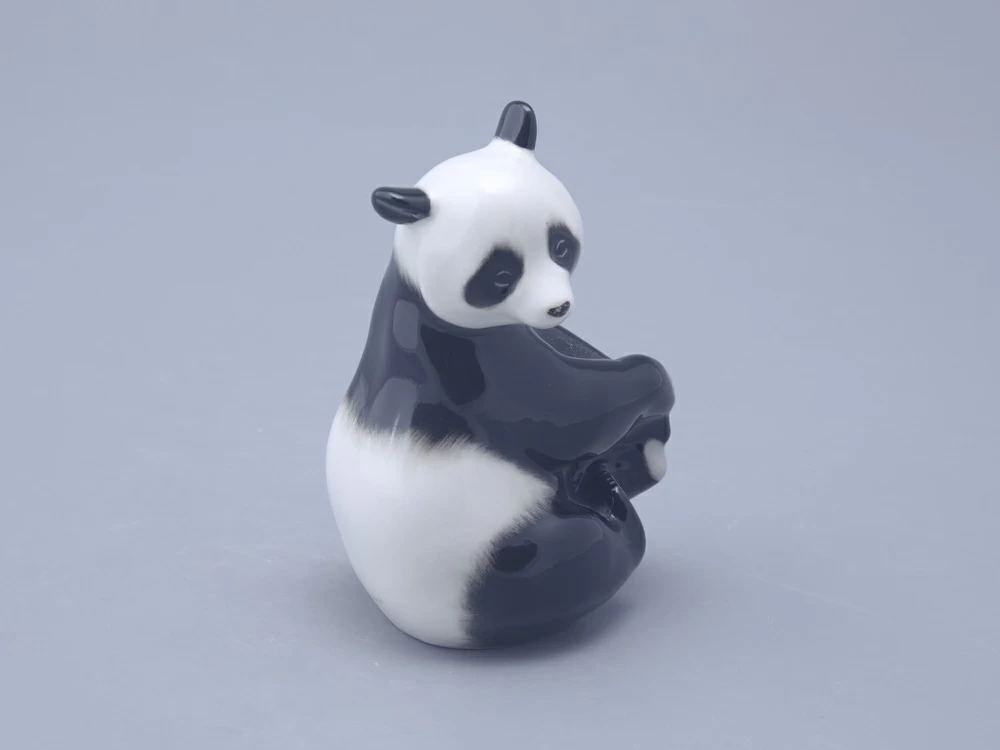 Скульптура Медведь бамбуковый изготовлена на Императорском фарфоровом заводе из мягкого фарфора в технике ручной подглазурной росписи. Автор формы - Веселов П.П. Высота скульптуры - 127 мм.
