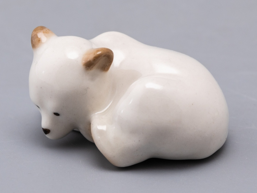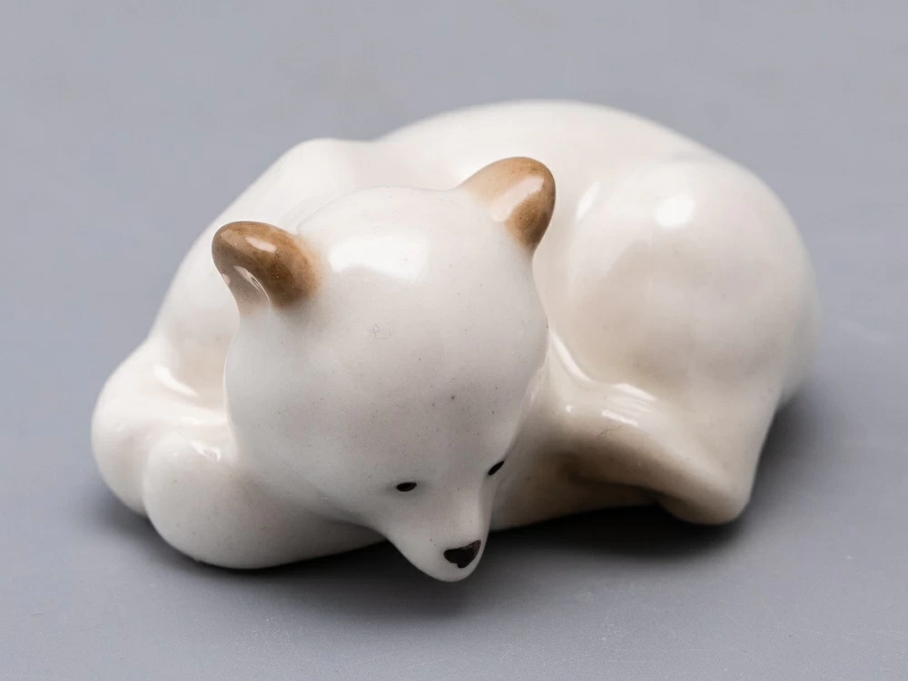Скульптура Медвежонок изготовлена на Императорском фарфоровом заводе в технике ручной подглазурной росписи. Автор формы - Веселов П.П. Высота скульптуры - 24 мм.