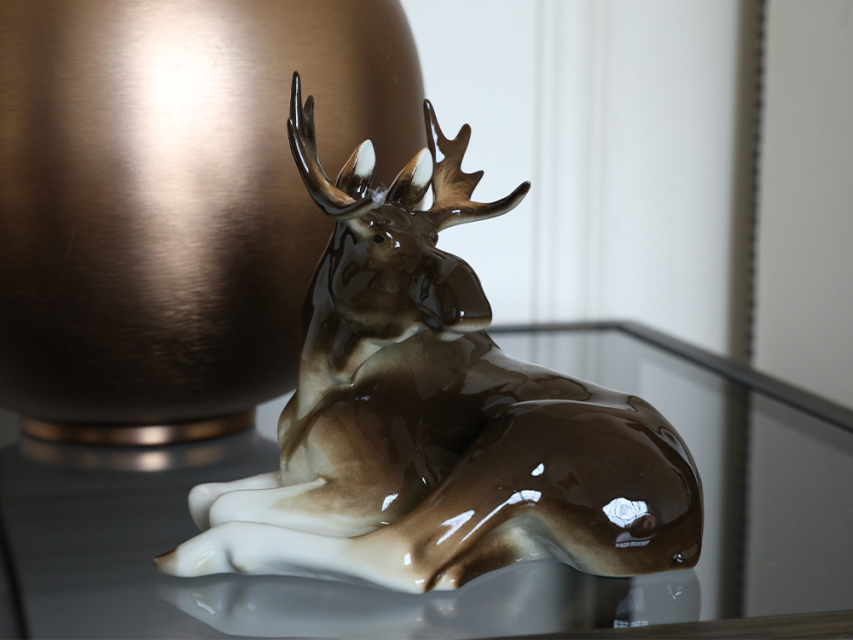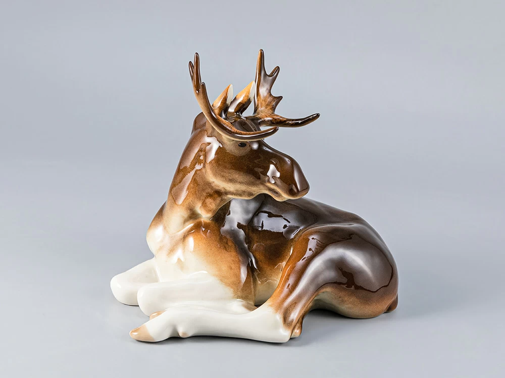 Скульптура Молодой лось изготовлена на Императорском фарфоровом заводе из твердого фарфора в технике ручной подглазурной росписи.