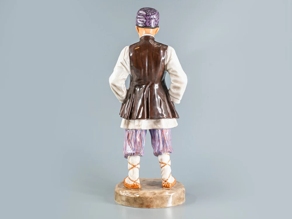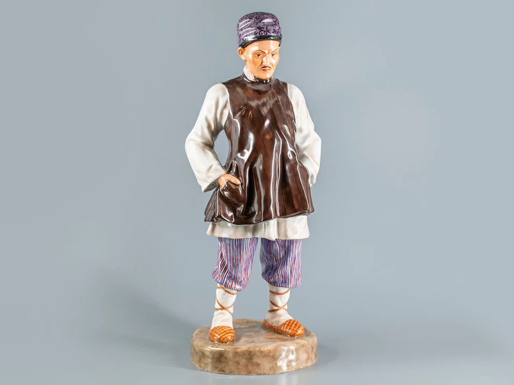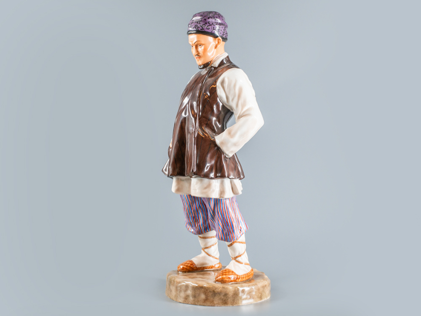 «Башкир» из серии «Народности России» одет в национальный костюм, характерный для региона поселения этой национальности: длинная белая рубаха с отложным воротником, сверху короткая безрукавка, цветные полосатые штаны с широким шагом, свободные и собранные на шнур в верхней части и узкие внизу; а его голову украшает стеганая шапка «бурек» из овечьей шкуры. Вместе со своей спутницей «Башкиркой», скульптурная пара представляет живой и динамичный образ, далекий от эмоционально нейтральных и безжизненных этнографических манекенов. Фигуры «Башкир» и «Башкирка» обладают характером и передают национальный колорит.