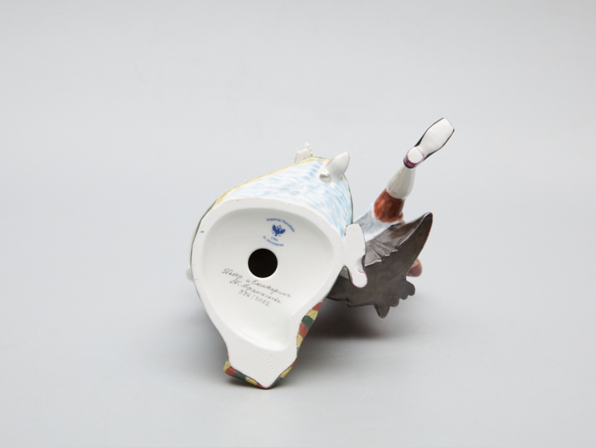 Скульптура представляет собой персонаж из серии А. Дегтярева "Петровская ассамблея". Первейшим удовольствием среди сподвижников Петра были ассамблеи, на которых веселились одетые в новомодные французские платья дамы и кавалеры. Нередко причудливые женские наряды дополнялись живыми украшениями, в качестве которых выступали маленькие пажи-арапчата – такие экзотические "птички" на фоне скупого северного пейзажа.