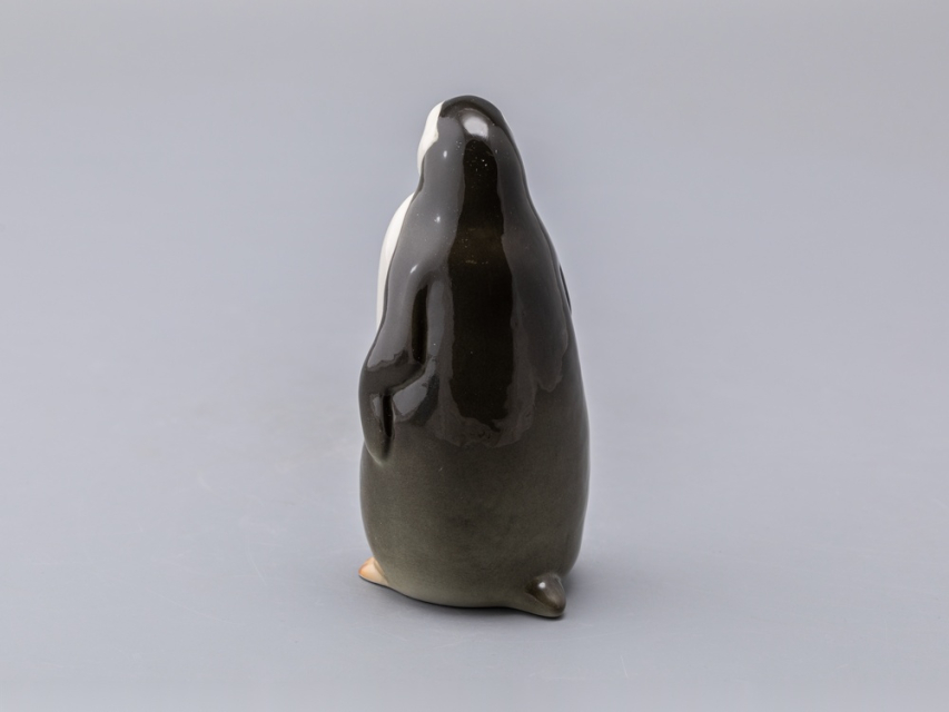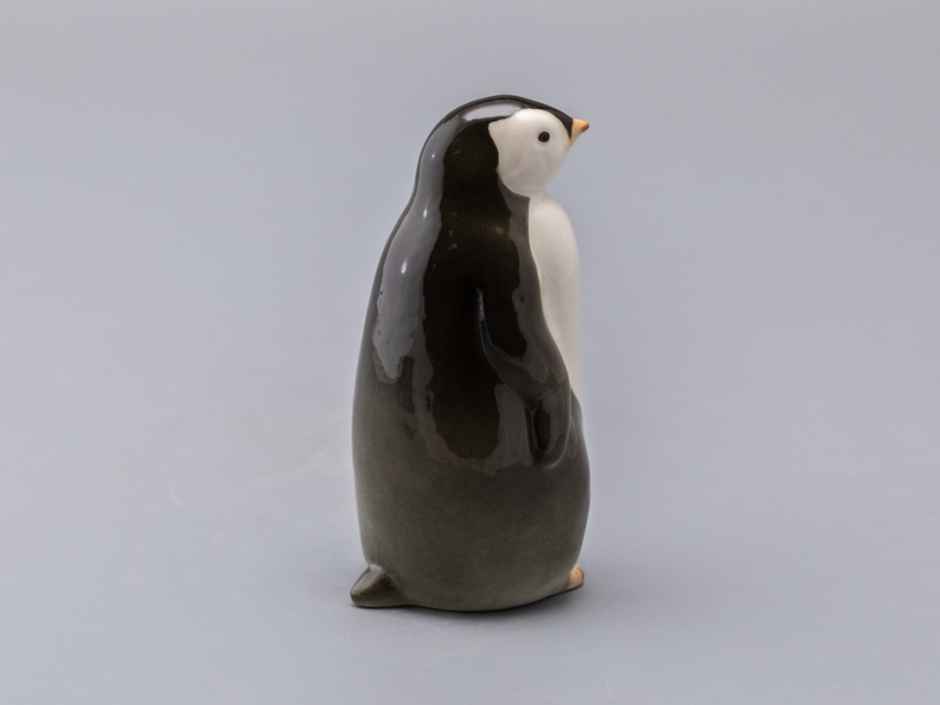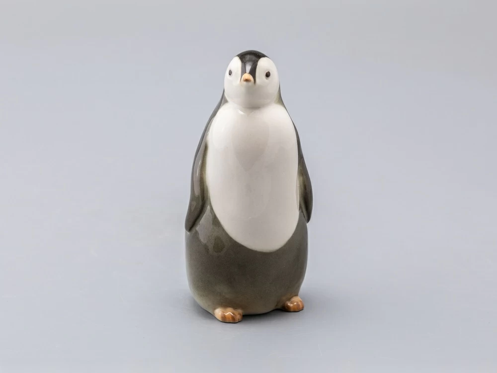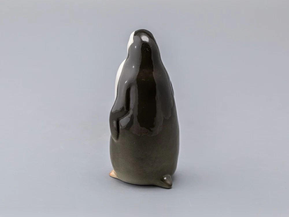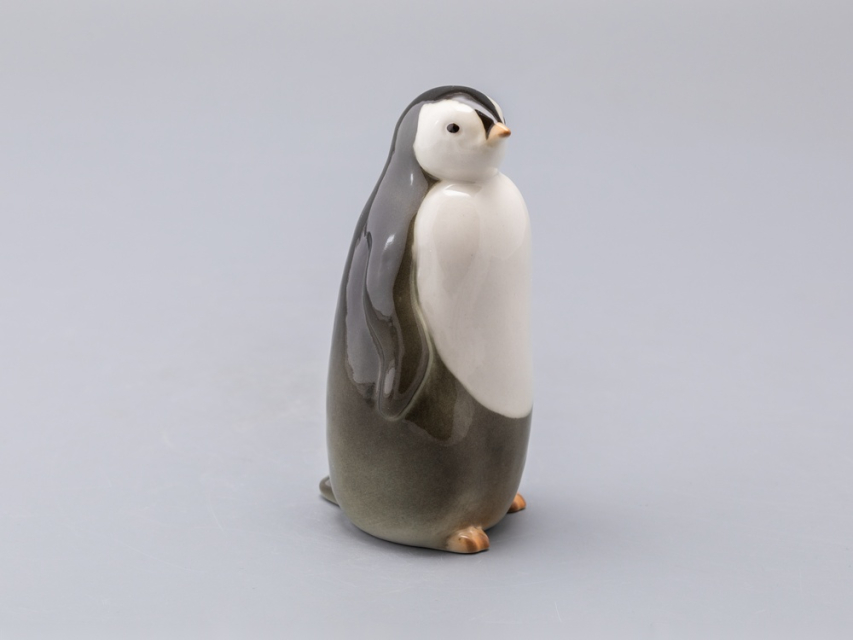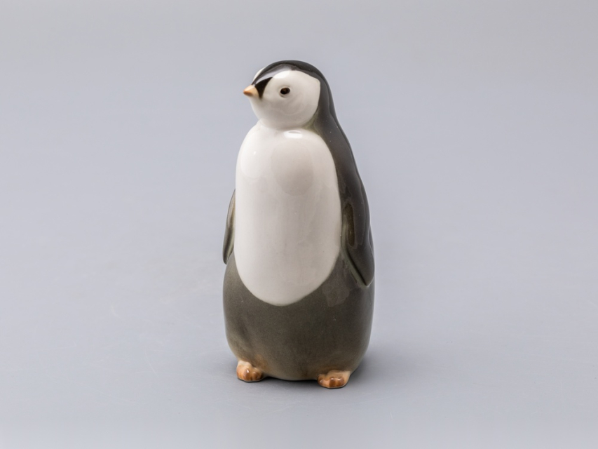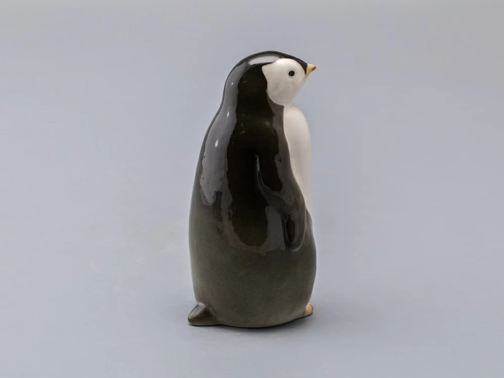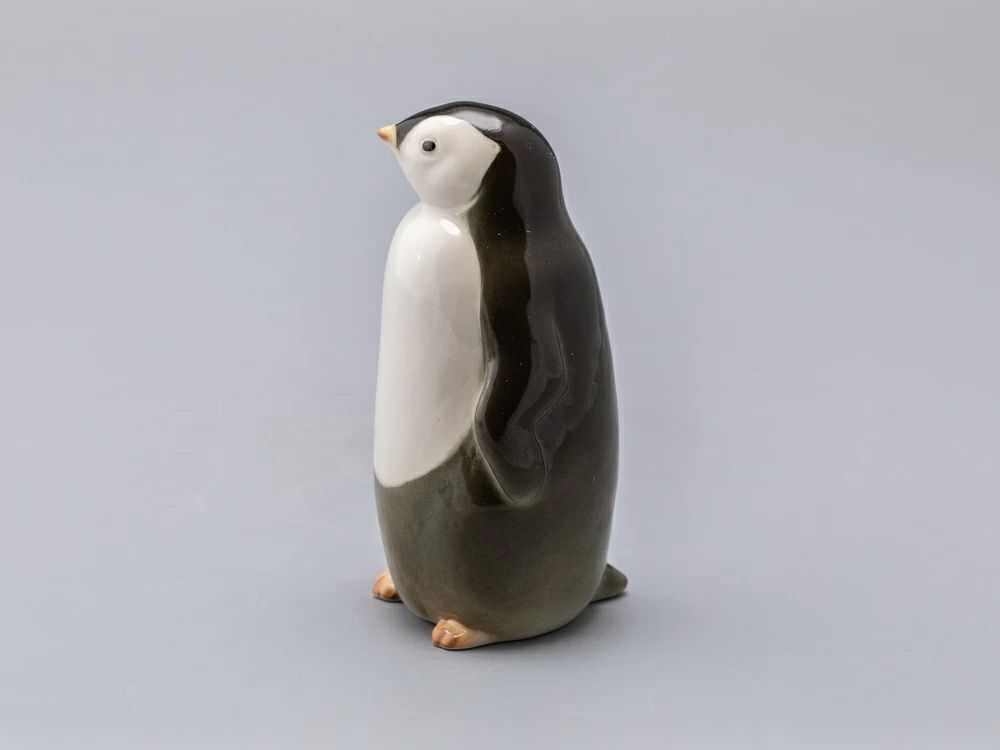 Забавная пара пингвинят – самец (пингвин №1) и самочка (пингвин №2) появились в 1960-е годы. Горделивый мальчик вытянулся и приподнял голову – смотрит немного свысока, а любопытная девочка слегка подалась вперед – что-то привлекло ее внимание. Фигурки пингвинят, выпускаемые в советское время, были с тонко проработанными, "пушистыми" спинками. Новые – почти гладкие, но это не сильно портит очаровательных птиц.