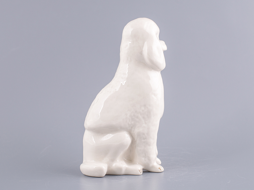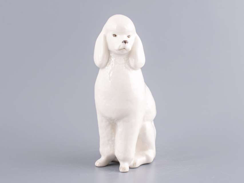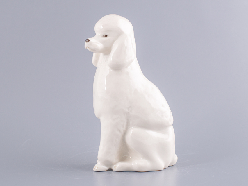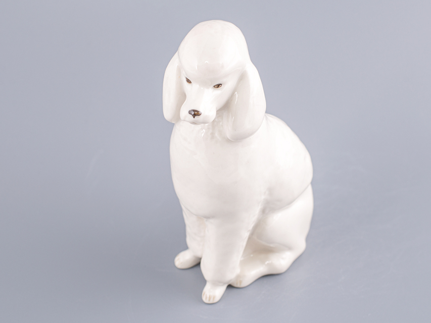 Скульптура Пудель изготовлена на Императорском фарфоровом заводе из мягкого фарфора в технике ручной подглазурной росписи. Автор формы - Веселов П.П. Высота скульптуры - 148 мм.