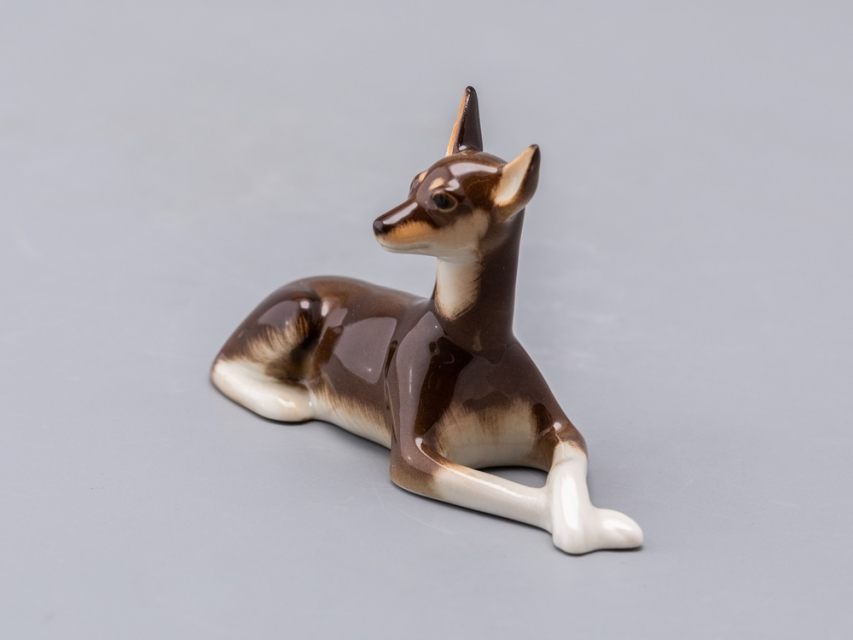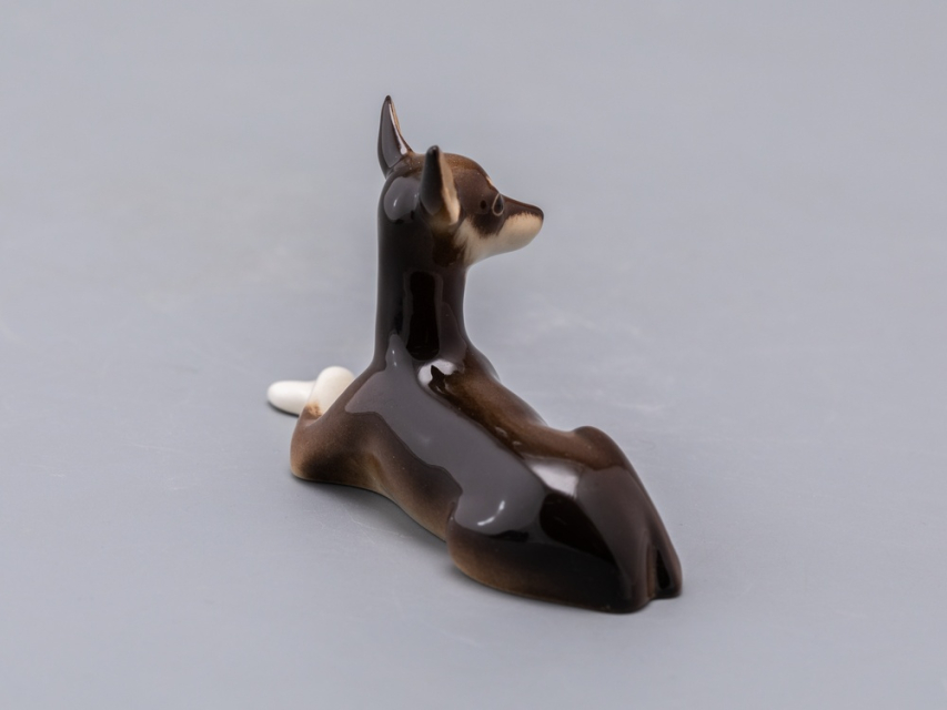 Шкодливый характер маленькой собачки по кличке Мио воплощен в фарфоре: кокетливо сложив лапки, она вопрошающе смотрит на своего хозяина.