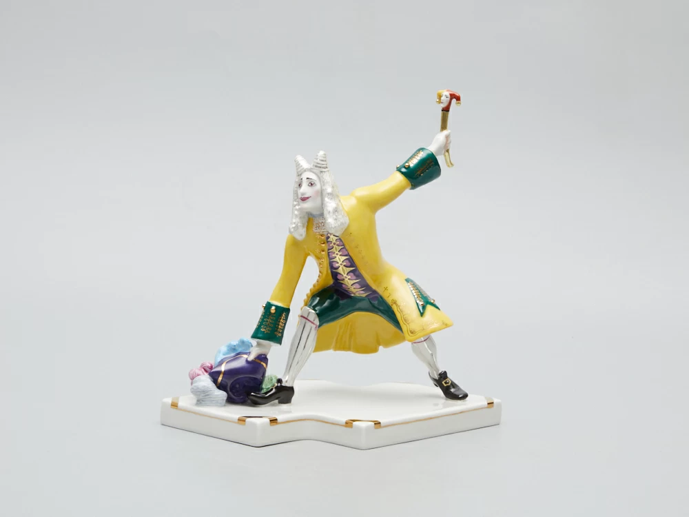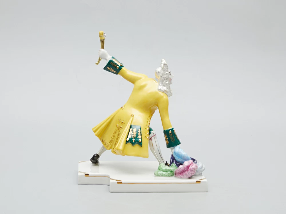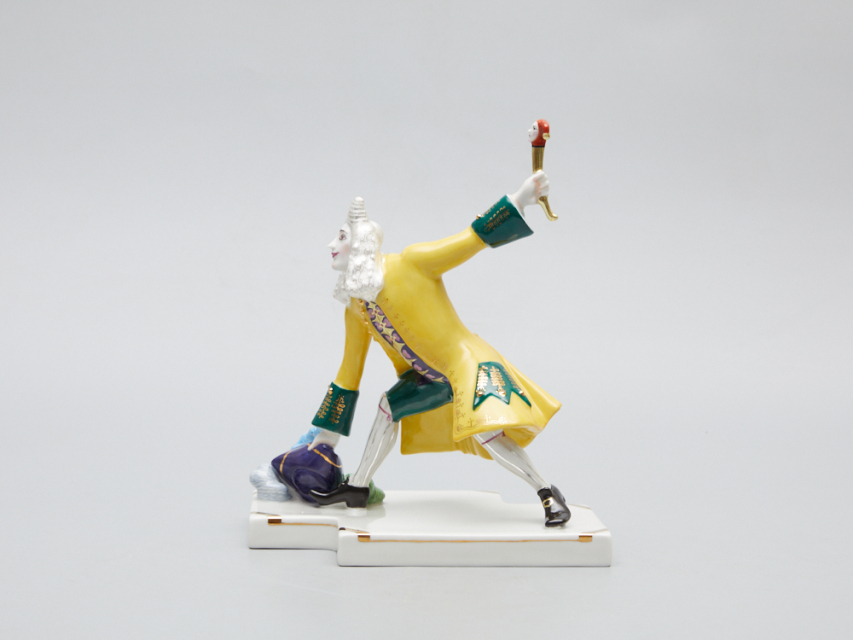 Скульптура представляет собой персонаж из серии А. Дегтярева "Петровская ассамблея". Первейшим удовольствием среди сподвижников Петра были ассамблеи, на которых веселились одетые в новомодные французские платья дамы и кавалеры.