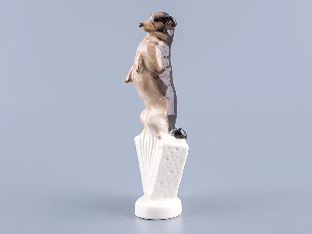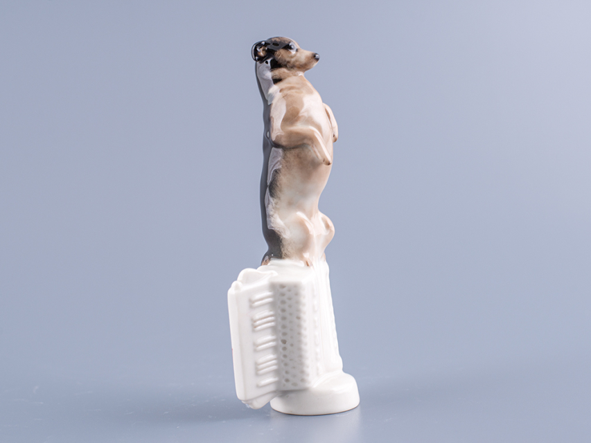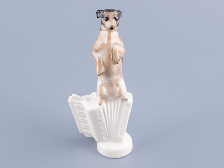 Скульптура Собачка Манюня изготовлена на Императорском фарфоровом заводе из мягкого фарфора в технике ручной подглазурной росписи. Автор формы - Дегтярев А.В. Высота скульптуры - 14,5 см.