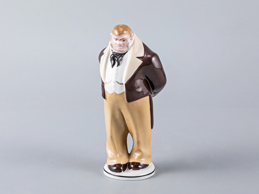 Скульптура ф. Собакевич изготовлена на Императорском фарфоровом заводе из твердого фарфора с применением только ручной росписи. Автор формы - Воробьев Б.Я. Высота изделия - 140 мм.