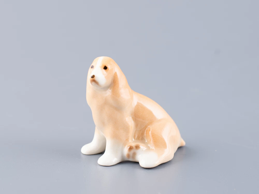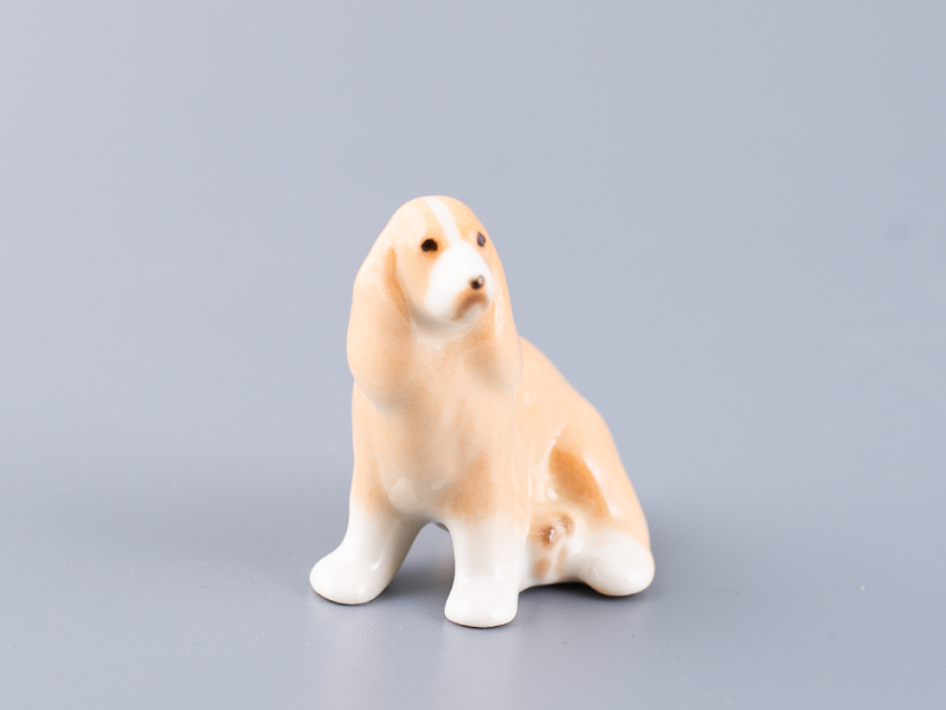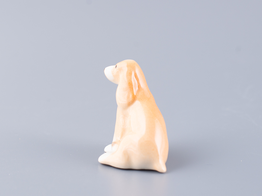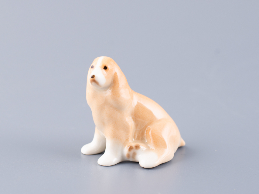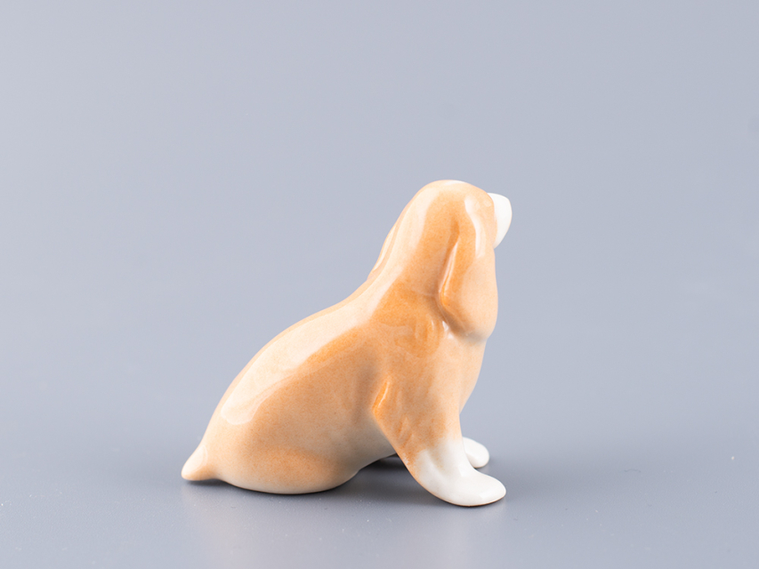 Скульптура Спаниелька изготовлена на Императорском фарфоровом заводе из мягкого фарфора в технике ручной подглазурной росписи. Автор формы - Веселов П.П. Высота скульптуры - 49 мм.