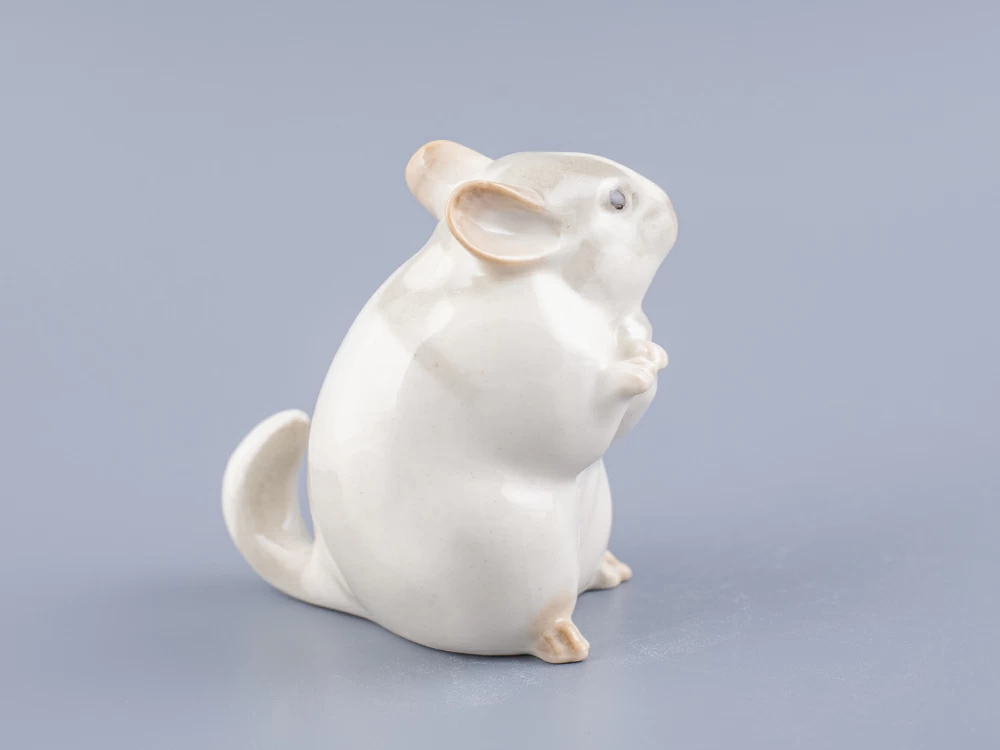 Скульптура Стоящая шиншилла изготовлена на Императорском фарфоровом заводе из мягкого фарфора в технике ручной подглазурной росписи. Автор формы - Белаш Г.А. Высота скульптуры - 89 мм.