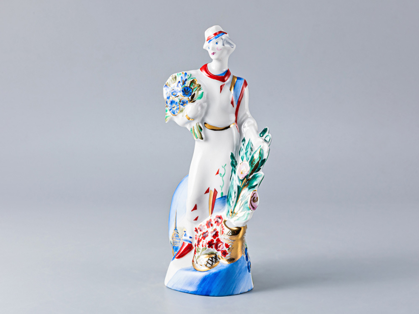 Скульптура ф. Цветочница изготовлена на Императорском фарфоровом заводе из твердого фарфора с применением только ручной росписи. Автор формы - Еропкина Э.И. Высота изделия - 205 мм.