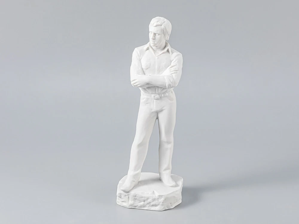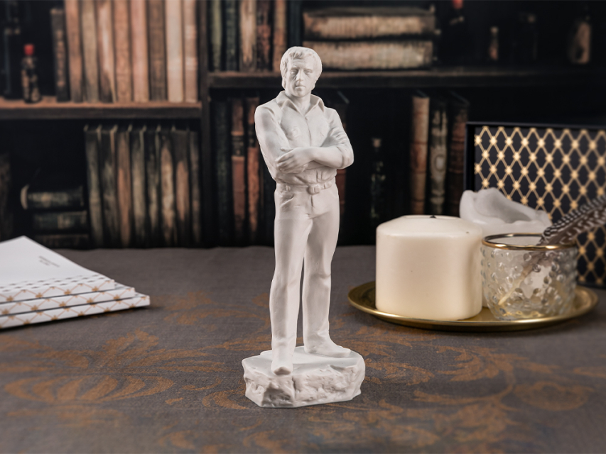 Именно такой получилась новая работа художника А. Ничепорчука – скульптура «Владимир Высоцкий». Автор выбрал для скульптурного портрета своенравный материал – «бисквит», использовав при изготовлении метод литья с последующим высокотемпературным обжигом. Тем не менее, скульптура удивительно точно передает «бунтарский» характер Высоцкого.