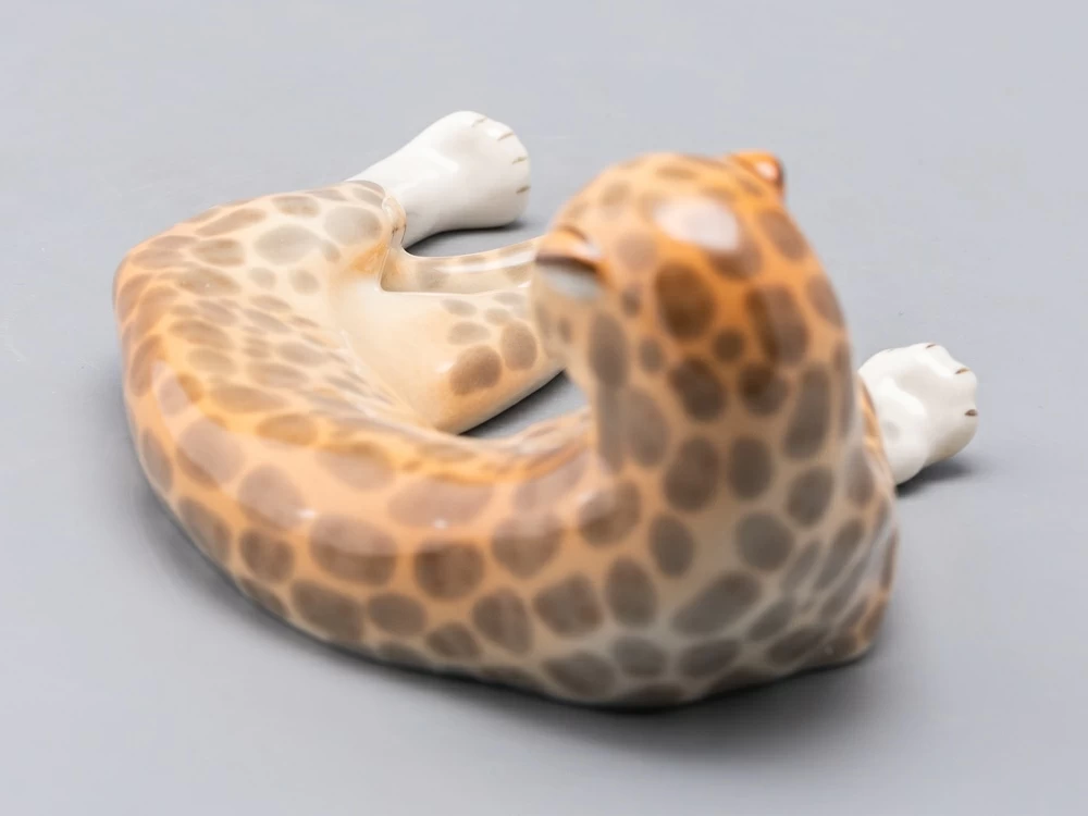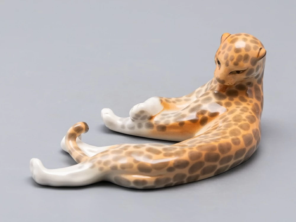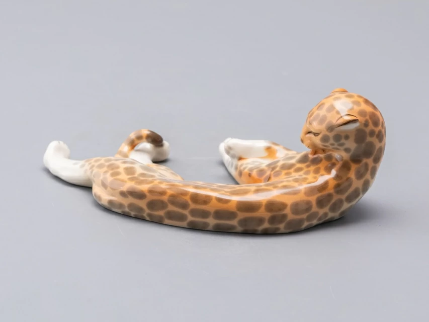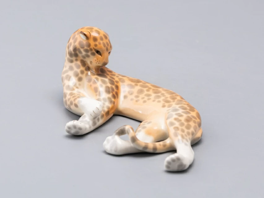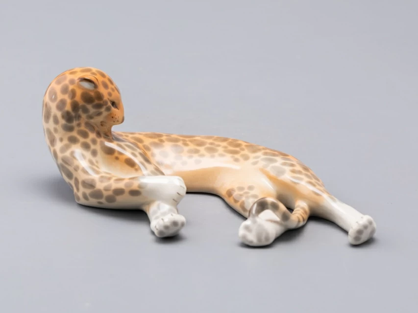 Скульптура Ягуар изготовлена на Императорском фарфоровом заводе из мягкого фарфора в технике ручной подглазурной росписи. Автор формы - Воробьев Б.Я. Высота скульптуры - 76 мм. Скульптура "Ягуар" создана в 1936 году заслуженным художником РСФСР Воробьевым Борисом Яковлевичем.