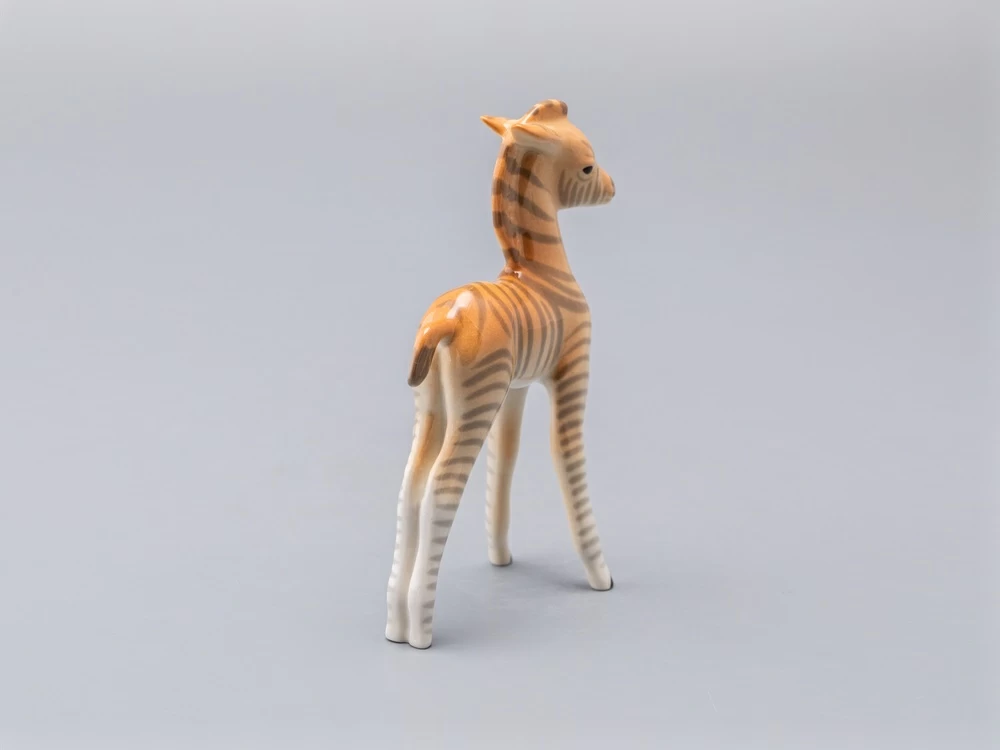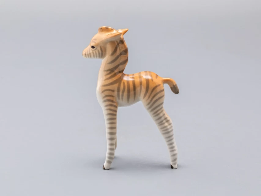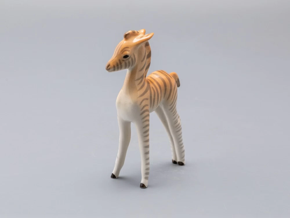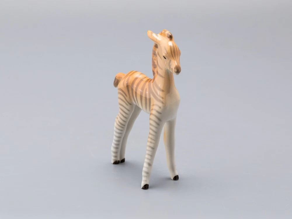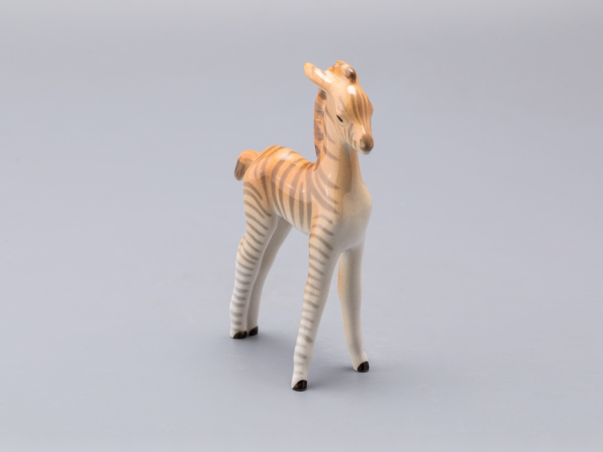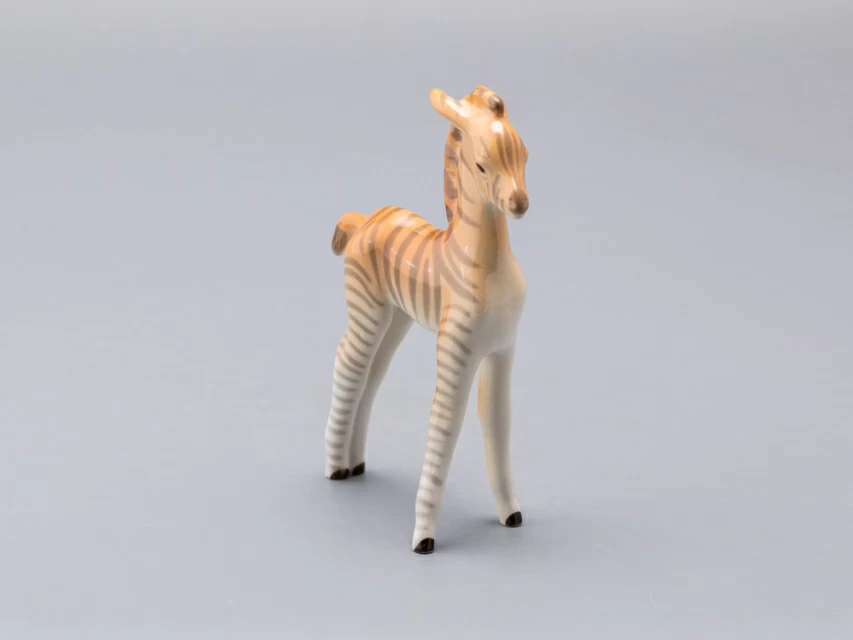 Скульптура Зебренок стоящий изготовлена на Императорском фарфоровом заводе из мягкого фарфора в технике ручной подглазурной росписи. Автор формы - Веселов П.П. Высота скульптуры - 169 мм.