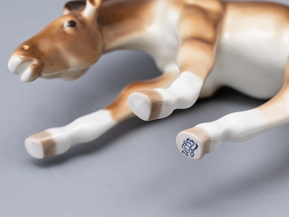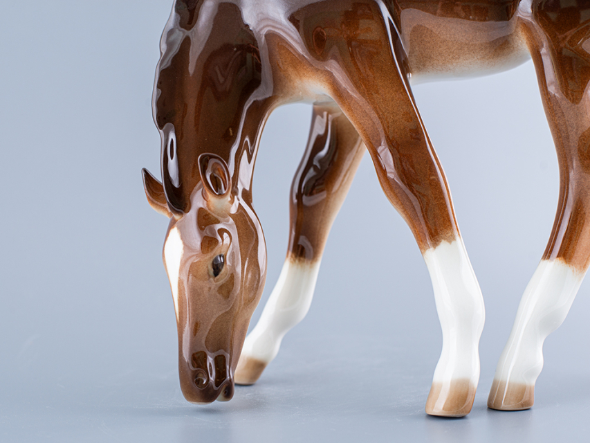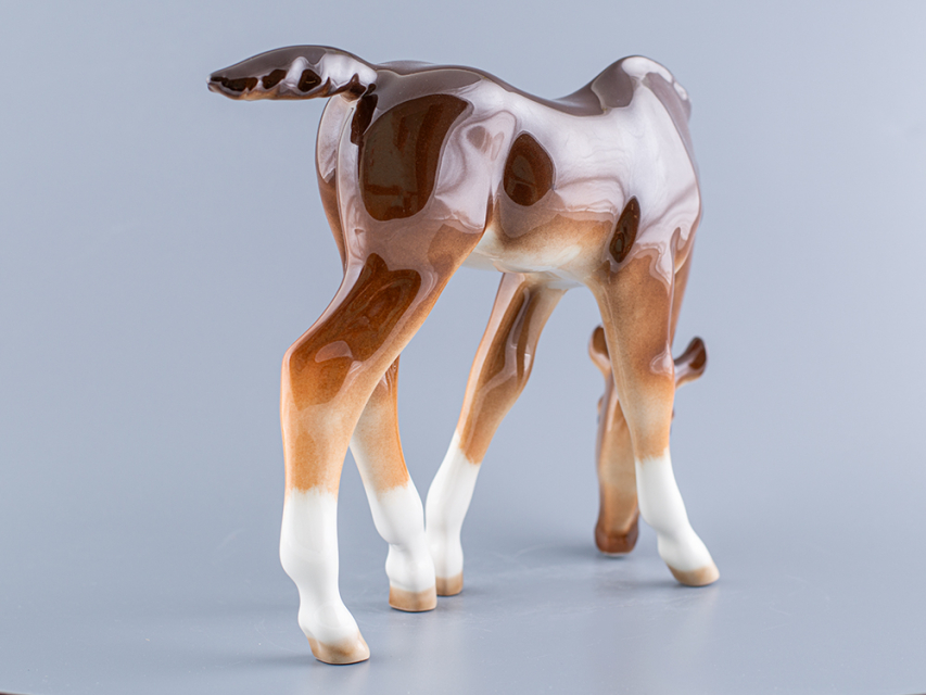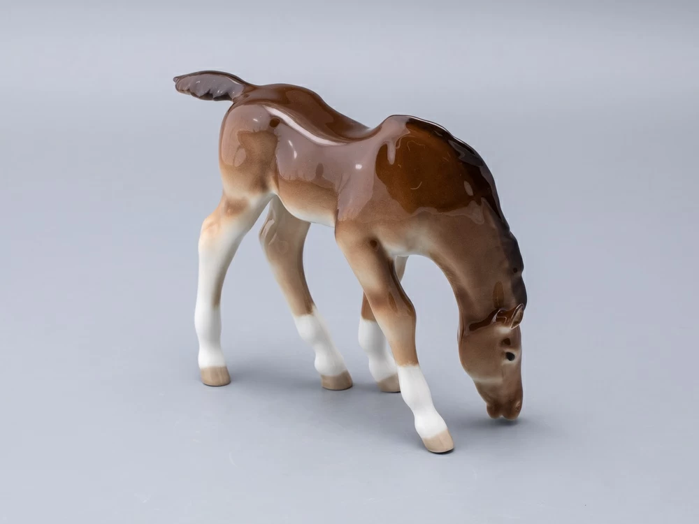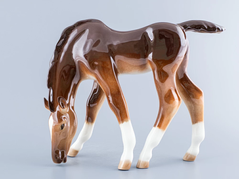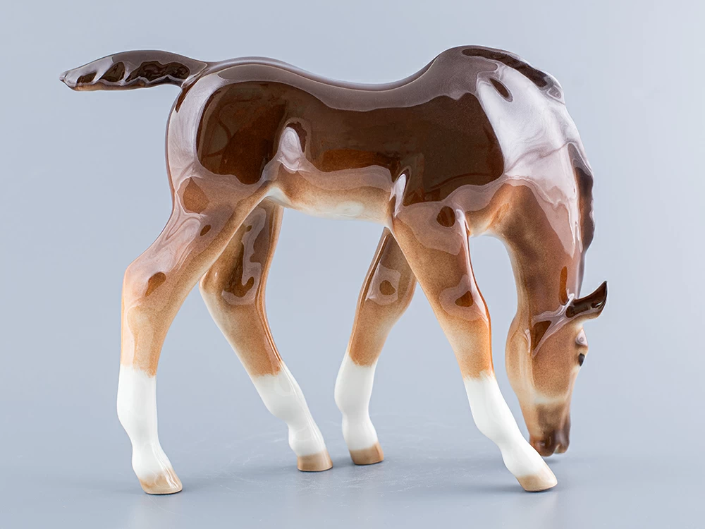 Скрупулёзное наблюдение за повадками представителей животного мира лежало в основе творчества Бориса Яковлевича Воробьёва, советского скульптора-анималиста, заслуженного художника РСФСР. Его колоссальный талант и невероятная наблюдательность проявляются даже в «стоящих» скульптурах. Каждый, кто знает и любит лошадей, кому довелось наблюдать за жеребёнком – то резвящимся, то устало засыпающим в траве, – легко узнает этот образ, воплощенный в фарфоре.
