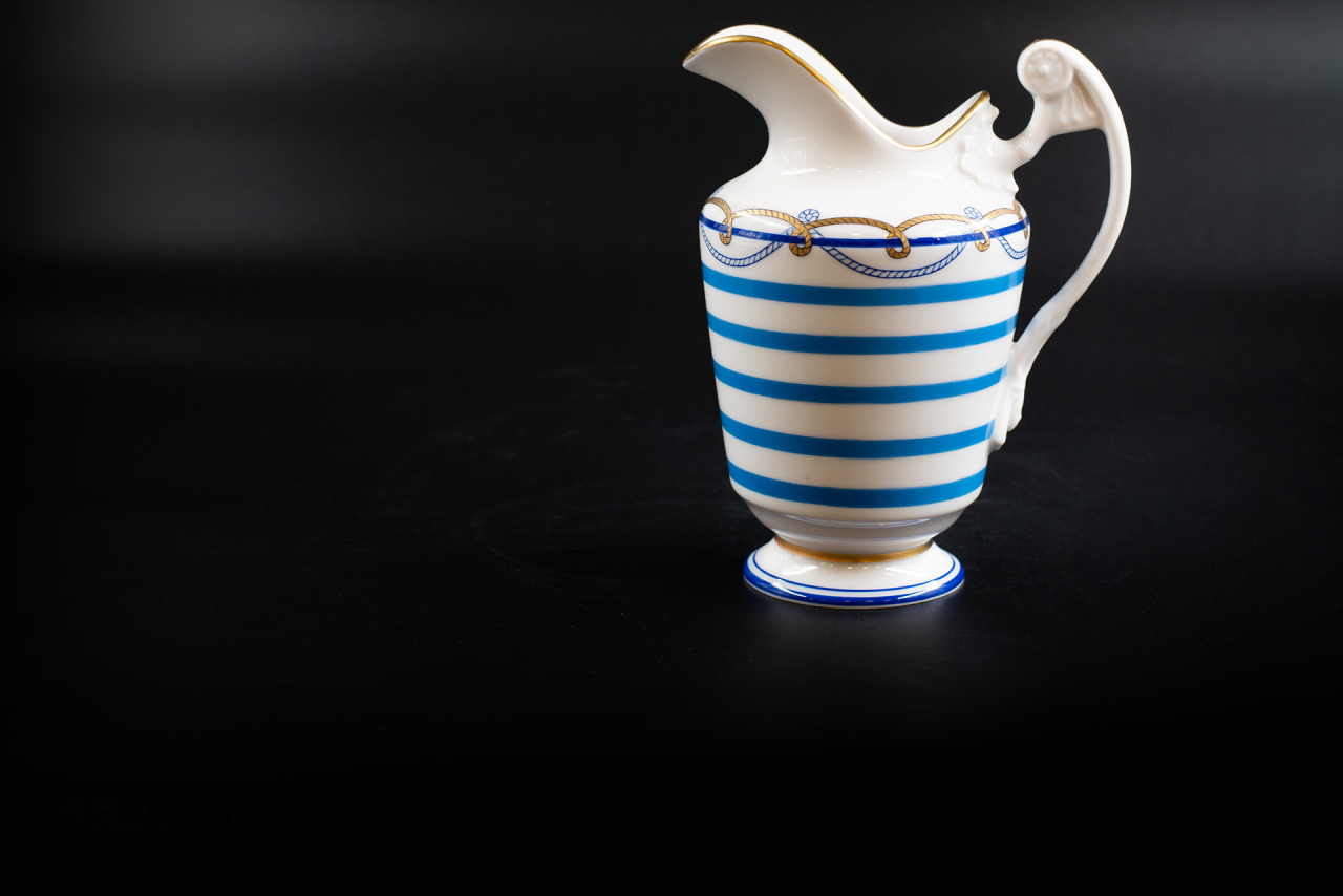 Сливочник изготовлен на Императорском фарфоровом заводе из твердого фарфора.