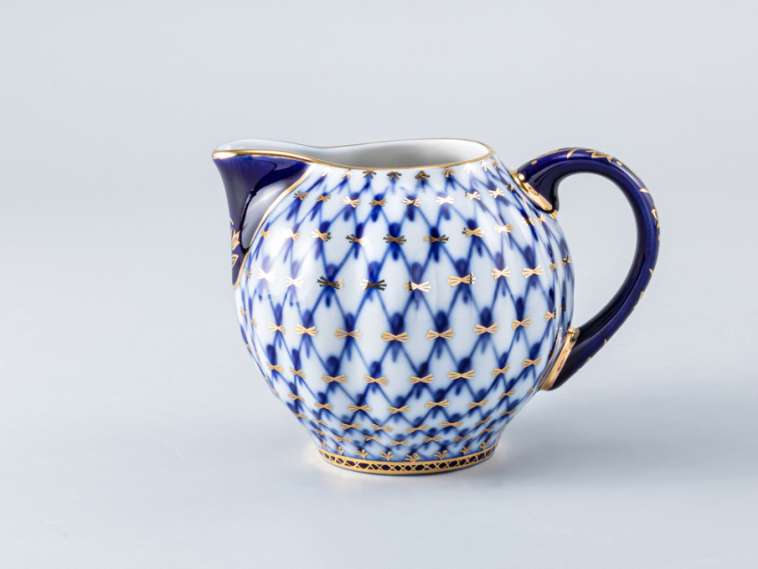 Сливочник рис. Кобальтовая сетка изготовлен на Императорском фарфоровом заводе из твердого фарфора с применением только ручной росписи. Автор рисунка - Яцкевич А.А. Объем изделия - 350 мл.
