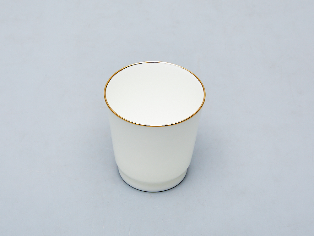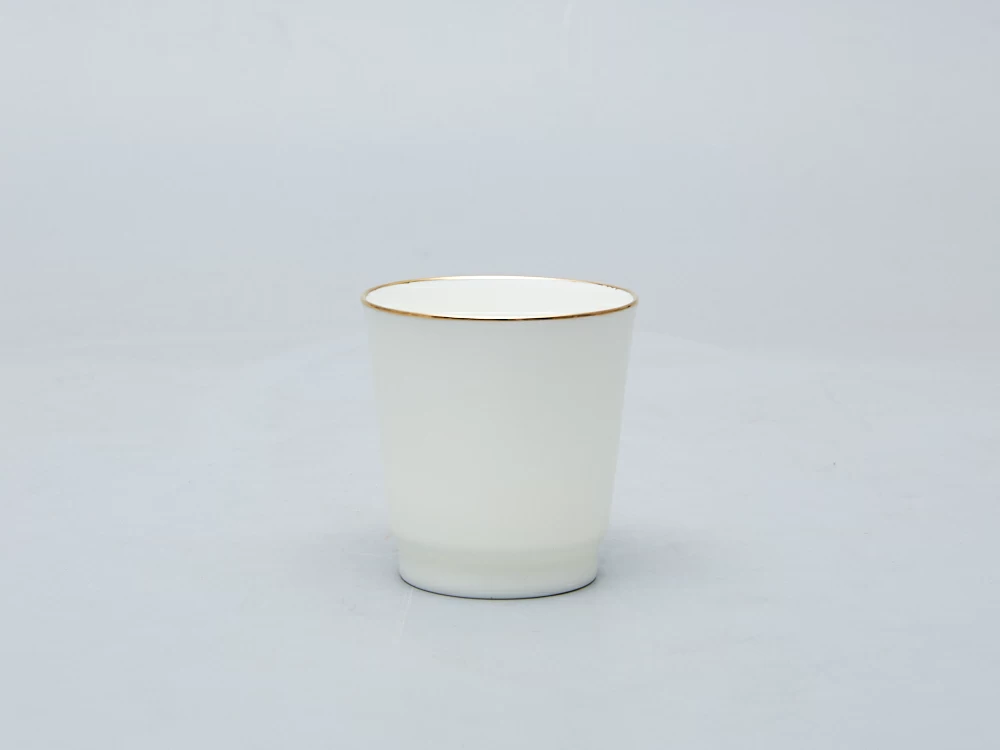 Стопка сувенирная рис. «Золотой кантик» изготовлена на Императорском фарфоровом заводе из костяного фарфора с отводкой золотом вручную. От обычного фарфора её отличает повышенная белизна, тончайший слой глазури, и та воздушность, которая была свойственна знаменитому сорту старинного китайского фарфора под названием «яичная скорлупа».