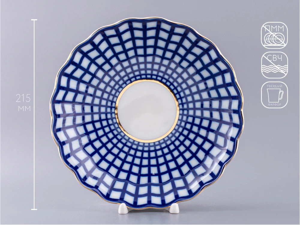 «Кобальтовая клетка» популярный и всеми любимый декор от Императорского фарфорового завода, создан как вариация росписи первого сервиза «Собственный», изготовленного на Императорском фарфоровом заводе в середине XVIII века изобретателем русского фарфора Дмитрием Виноградовым для императрицы Елизаветы Петровны. Изделия из высококачественного фарфора ИФЗ, расписанные сетчатым кобальтовым узором на белом фоне, будут гармонично сочетаться как с классическим интерьером, так и в стиле модерн.