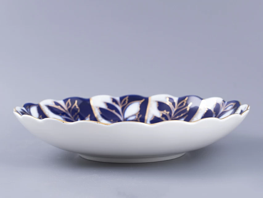 Сухарница изготовлена на Императорском фарфоровом заводе из твердого фарфора.