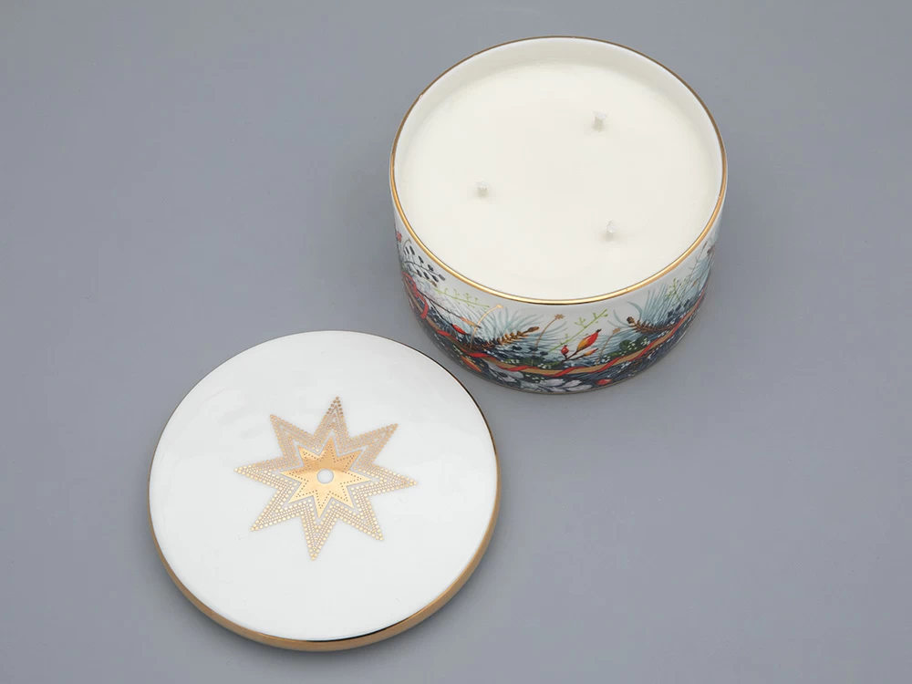 Свеча «Календа» входит в серию роскошных, тщательно отобранных ароматов, которые придутся по душе даже самым взыскательным ценителям парфюмерии для дома. Изысканный рельефный рисунок превращает фарфор в украшение для квартиры, загородного дома или офиса, создаст новогоднее настроение. Когда свеча закончится, фарфор можно использовать как интерьерный аксессуар, подсвечник, вазу или шкатулку.