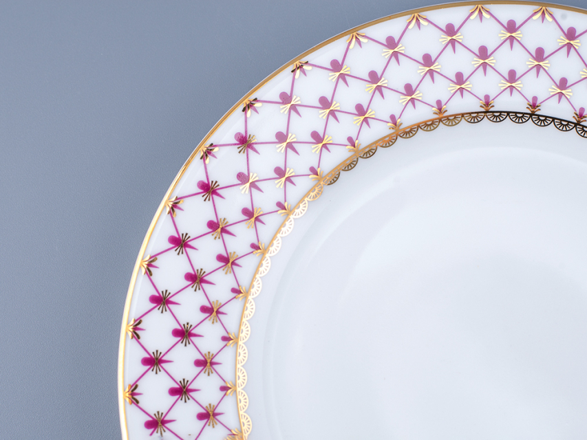 «Сетка-блюз» - это современная интерпретация росписи «Кобальтовая сетка», ставшей признанной классикой Императорского фарфорового завода. Розовый цвет отсылает к прообразу этого легендарного мотива – «Собственному» сервизу Императрицы Елизаветы Петровны, выпущенного в 1750-х годах, а ныне хранящегося в коллекции Государственного Эрмитажа.