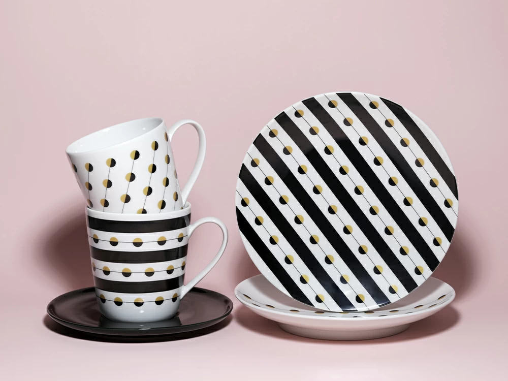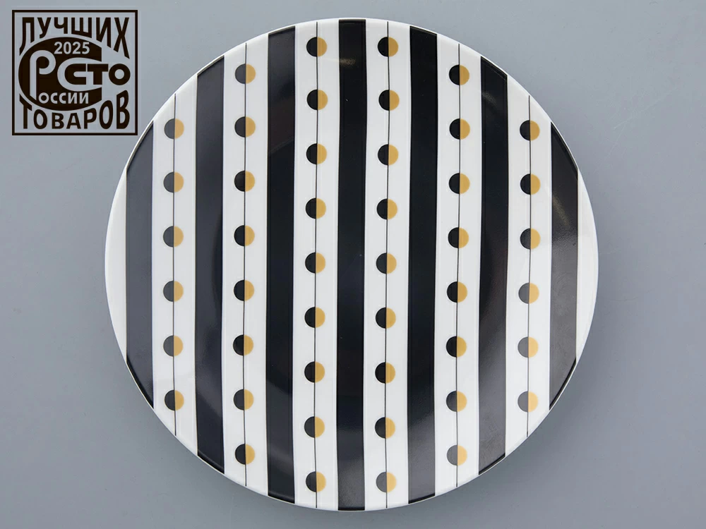 Тарелка из коллекции «Балтийский берег» порадует своей функциональностью и станет настоящим украшением сервировки. Вдохновленный природой Балтийского побережья, дизайн притягивает взгляд. На фарфоре будто рассыпались красивейшие бусины из янтаря, которым так славится регион. Эффектные черные полоски, который автор добавила в композицию, напоминают оттенок редкого черного янтаря. Лаконичный декор со скандинавским акцентом подчеркивает форму тарелки, придает ей стиль и индивидуальность. Благодаря универсальному дизайну тарелка порадует ценителей разных стилей в интерьере: от минимализма до бохо.