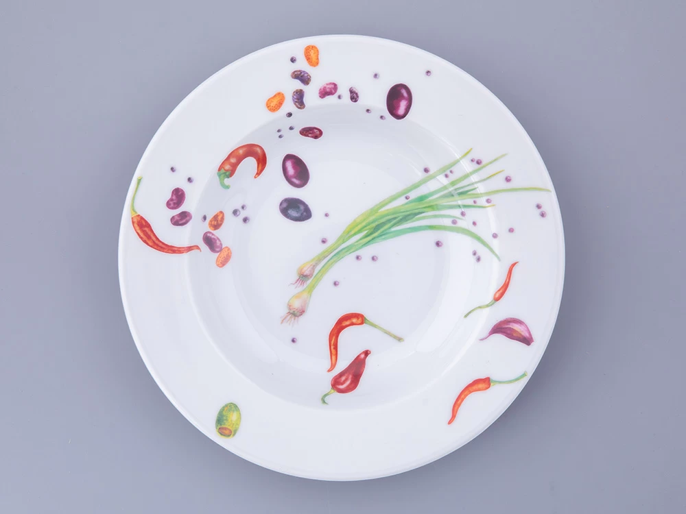 Коллекция фарфора «Мамина дача» вдохновлена теплотой летних дней, свежестью вкуснейших овощей с собственного огорода и уютом загородной жизни.