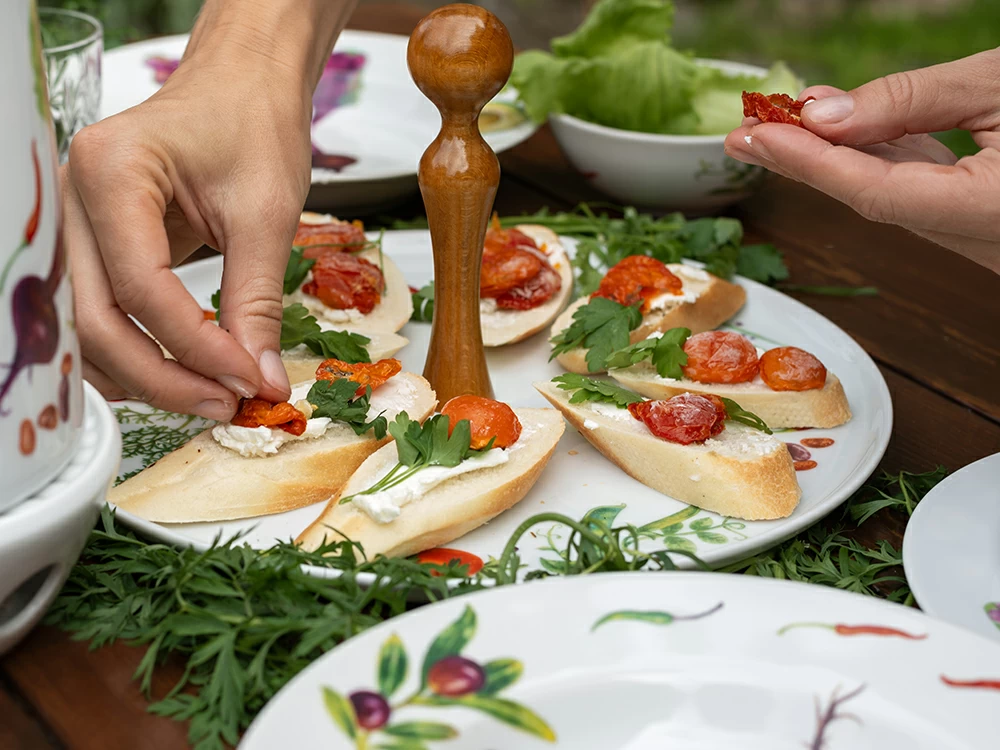 Коллекция фарфора «Мамина дача» вдохновлена теплотой летних дней, свежестью вкуснейших овощей с собственного огорода и уютом загородной жизни.