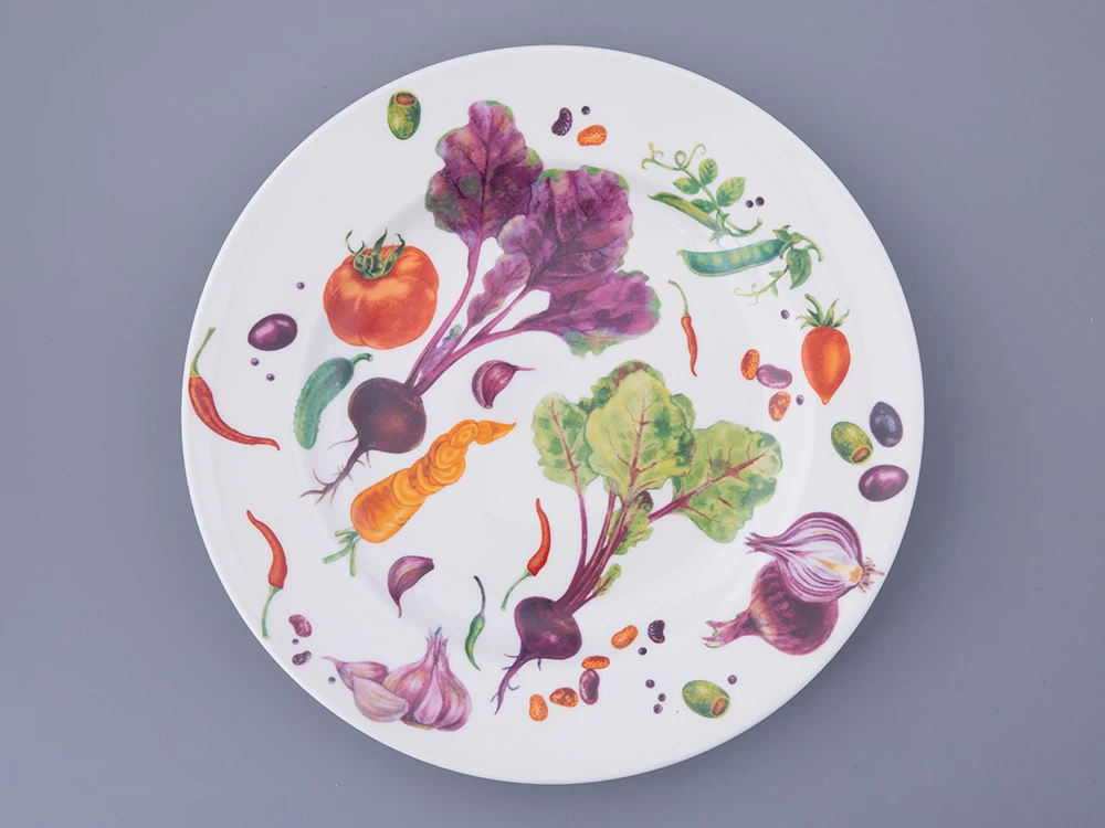 Наверное, почти у каждого человека сохранились теплые воспоминания о летних каникулах, проведенных на даче: беззаботное время, наполненное семейными встречами, шумными обедами и теплыми воспоминаниями. Коллекция «Мамина дача» поможет воспроизвести эту атмосферу благодаря ярким рисункам, нанесенным на разные предметы сервировки: сочные огурцы и помидоры, перец и горох, яркие корнеплоды. Рисунки, несмотря на определенную долю стилизации, выполнены с тонкой проработкой, подчеркивая красоту каждого овоща.