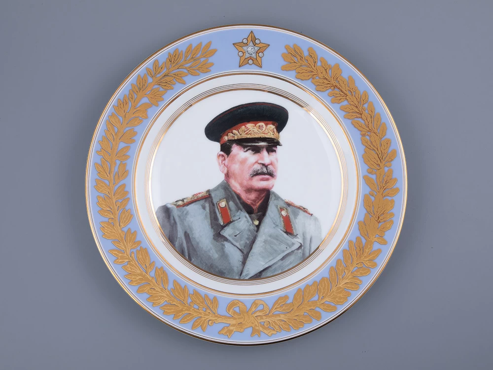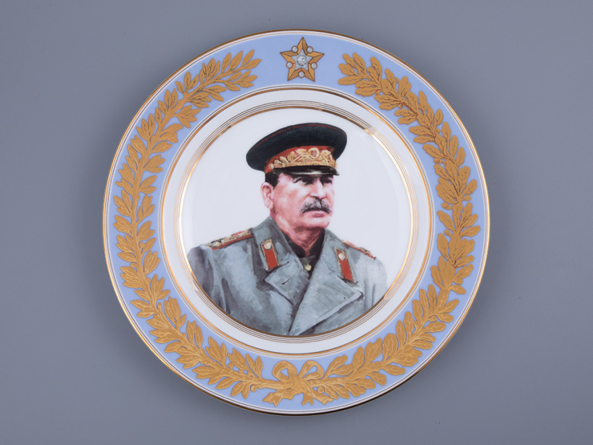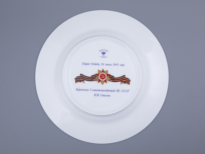 На зеркале тарелки изображен портрет Иосифа Виссарионовича Сталина, возглавлявшего страну в труднейший период ее истории. Выполненный по уникальным историческим фотографиям, портрет тонко и достоверно передает черты Сталина. На портрете И.В. Сталин предстает облаченным в пальто, китель и парадную фуражку – как и в день Парада Победы, 24 июня 1945 года.