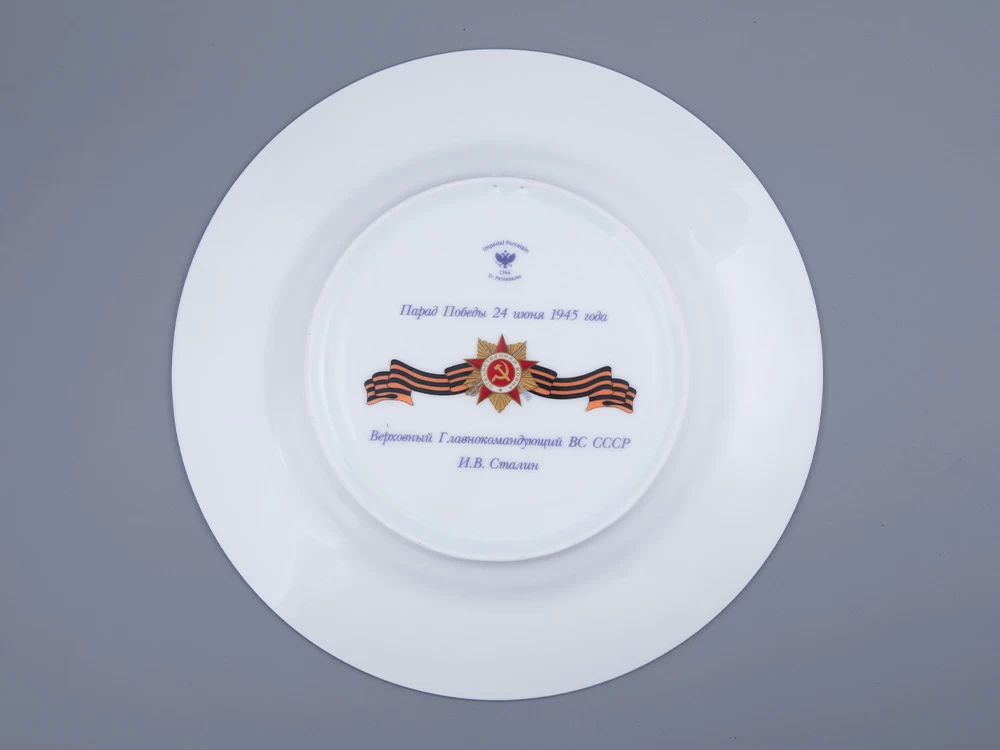 Декоративная тарелка из коллекции «Маршалы Победы» выпущена Императорским фарфоровым заводом к 80-летию Победы в Великой Отечественной войне.