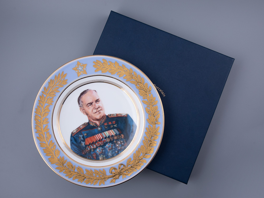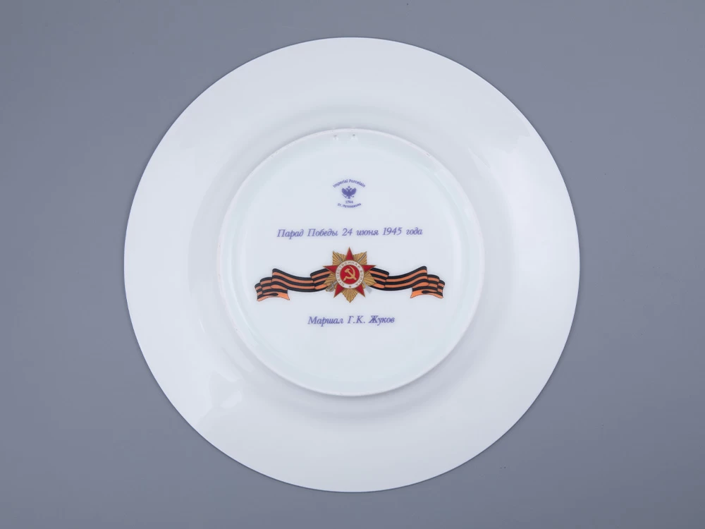 Декоративная тарелка из коллекции «Маршалы Победы» выпущена Императорским фарфоровым заводом к 80-летию Победы в Великой Отечественной войне.