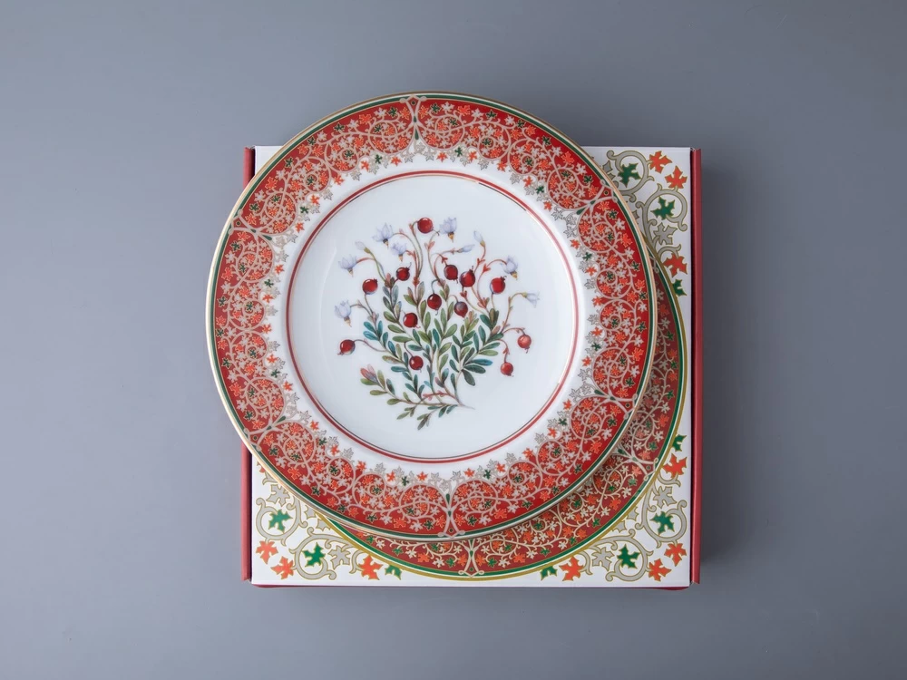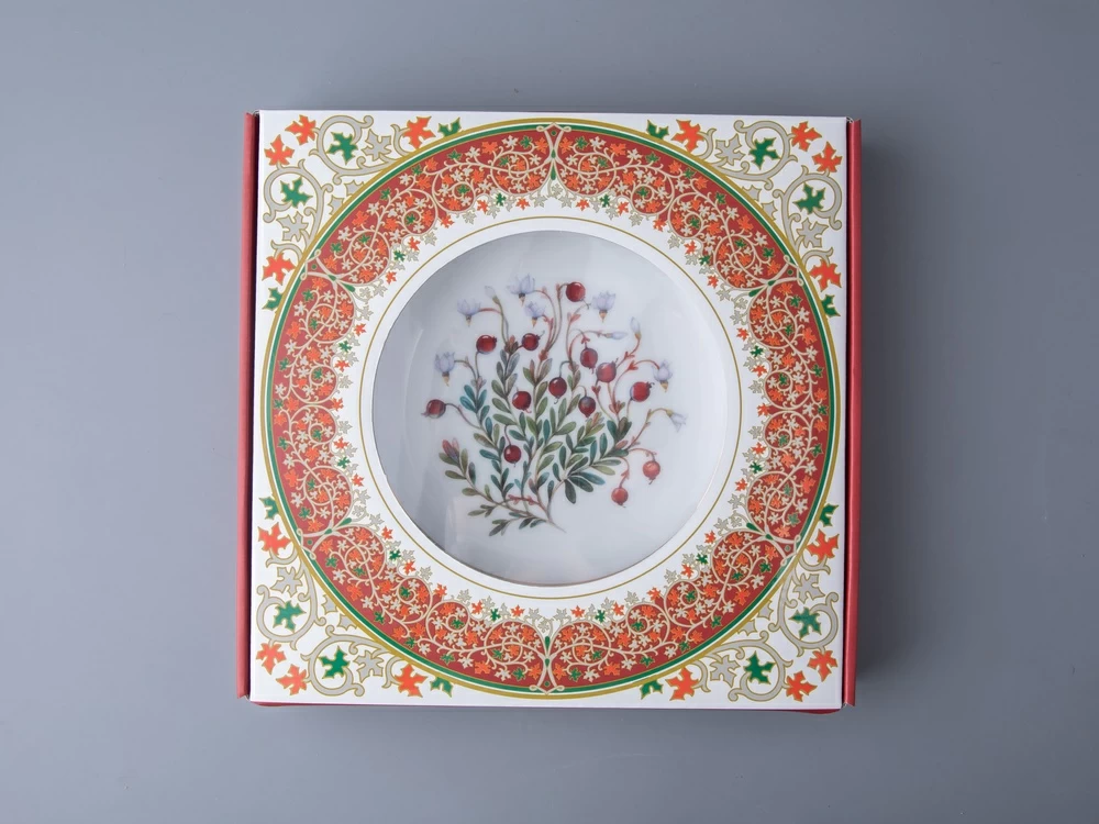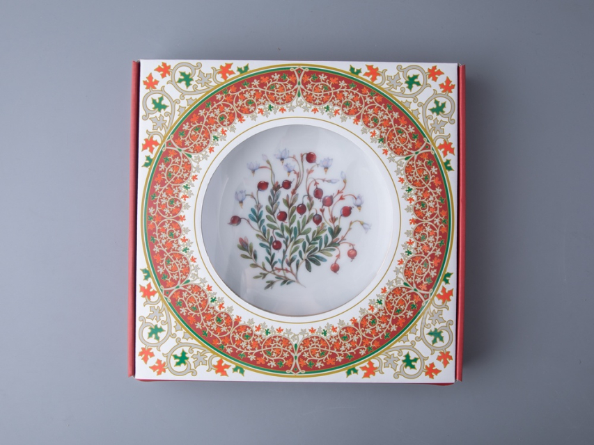 Тарелка декоративная 270 мм в подарочной упаковке форма Европейская рисунок Клюква заповедная, арт. 81.34279.00.1
