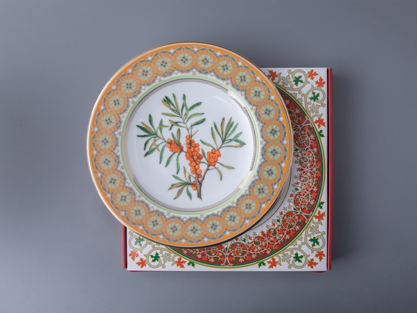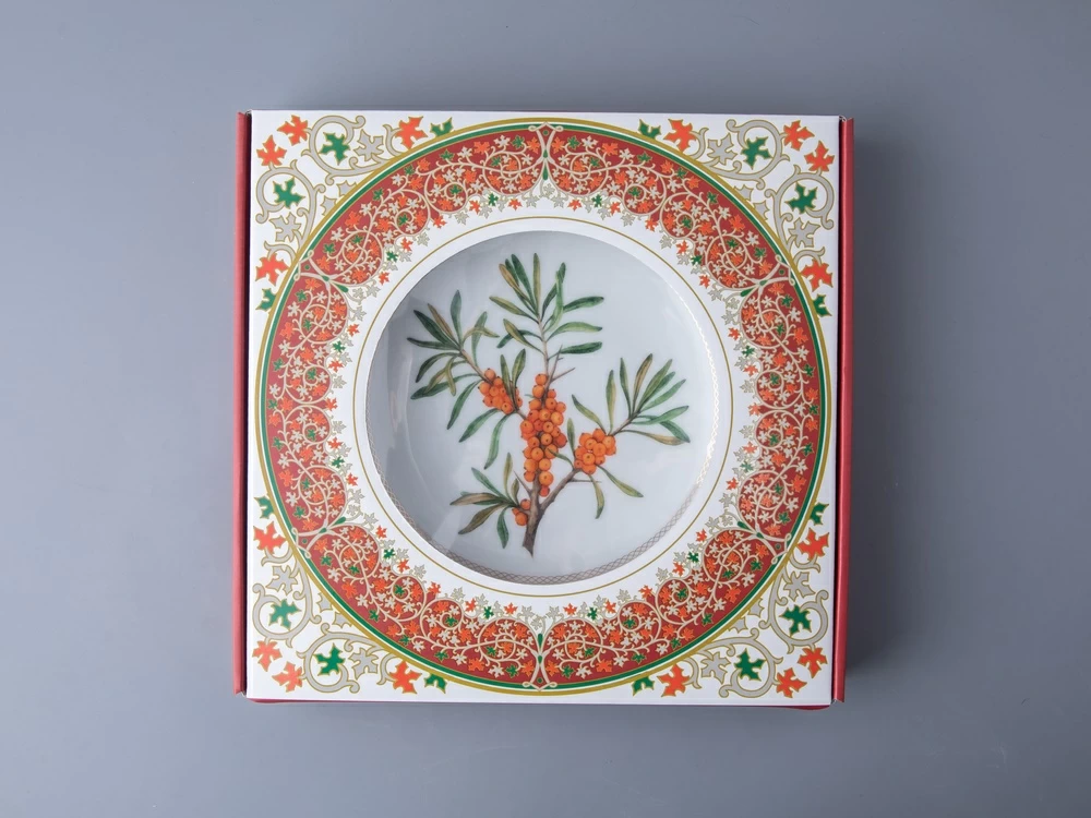 Тарелка декоративная 270 мм в подарочной упаковке форма Европейская рисунок Облепиха сибирская, арт. 81.33947.00.1