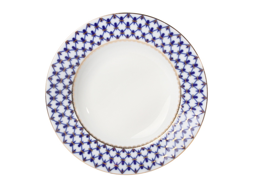 Тарелка подстановочная рис. Кобальтовая сетка изготовлена на Императорском фарфоровом заводе из твердого фарфора с элементами ручной росписи.