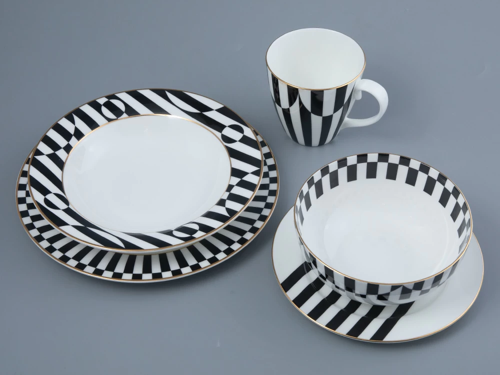 В линейке «Да и нет Black» автор переносит на фарфор черно-белую эстетику, давно завоевавшую популярность в мире моды. Строгий черный цвет выглядит еще насыщеннее за счет оттенка фарфора, в ответ подчеркивая белизну материала. Несмотря на аскетичную цветовую гамму, серия выглядит динамично за счет графических рисунков, каждый из которых подобран для определенной формы, и золотых отводок.