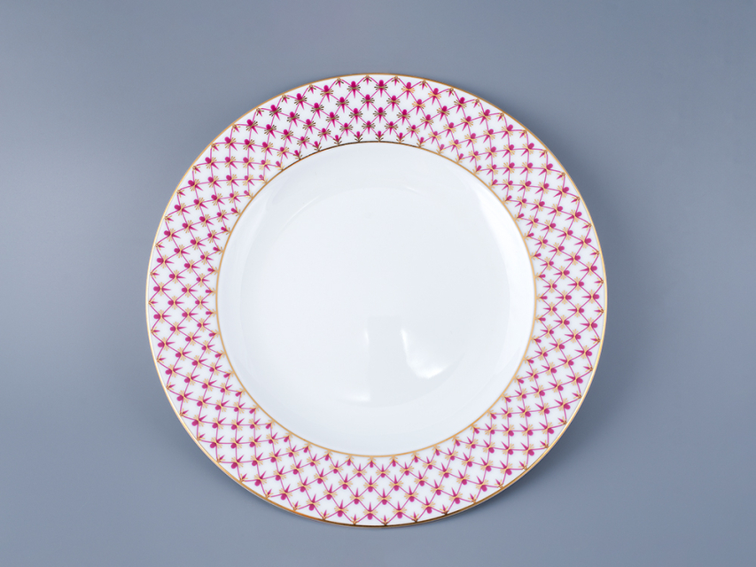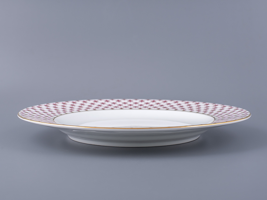 Тарелки формы "Европейская-2" отличаются своим широким плоским бортом и совсем небольшим углублением. Края тарелки параллельны столу.