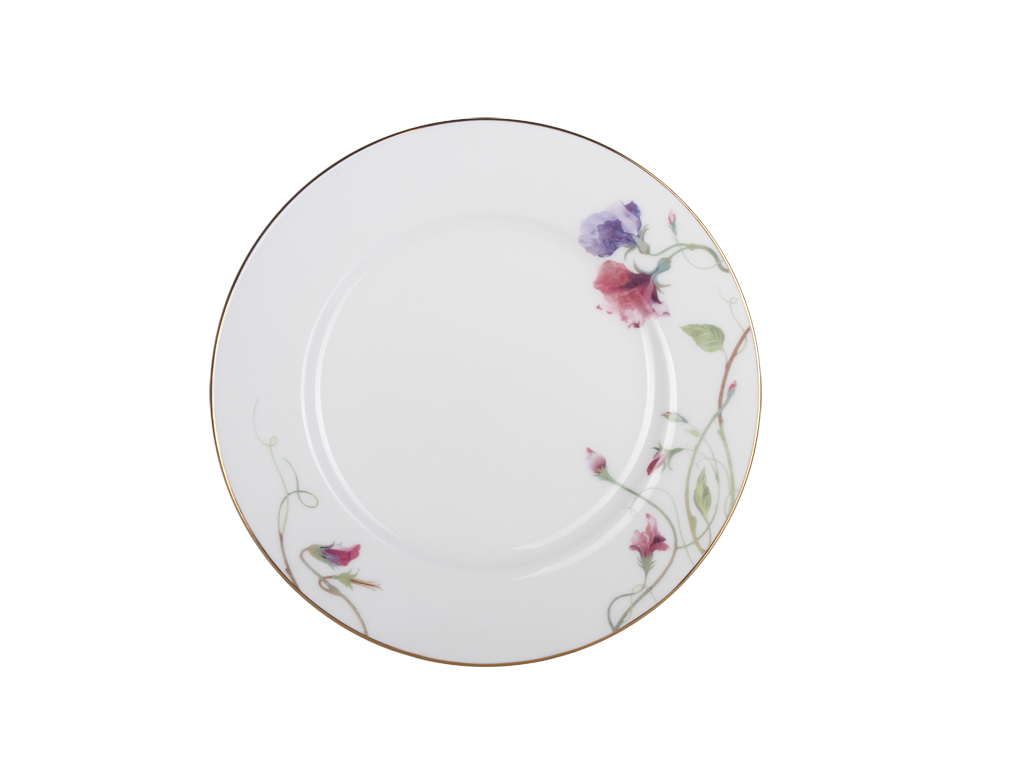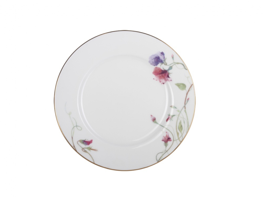 Растительные мотивы являются одними из самых распространенных в декоративно-прикладном искусстве. Вариации цветочных росписей по фарфору чрезвычайно разнообразны – от стилизованных до натуралистических изображений с точным воспроизведением мельчайших деталей. Декор сервиза прост и изящен. В оформлении изделий сочетаются яркая фантазия и тонкий художественный вкус автора. На фарфоровой поверхности распускается нежный, трогательный душистый горошек – прекрасное создание богини Флоры.