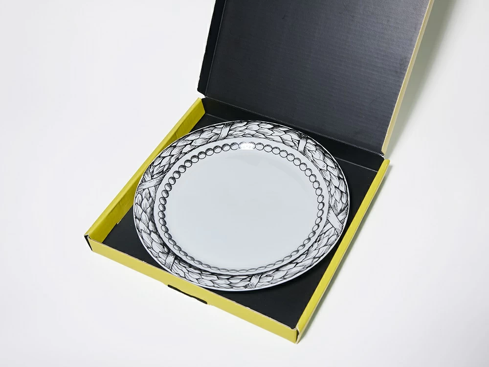 На благородной поверхности предметов запечатлены элементы усадебной архитектуры: изящные гирлянды и розетки, листья аканта и капители ордеров, которые гармонично переместились с архитектурных сооружений на тончайший костяной фарфор. Техника гравюры рождает тонкую игру света и тени, подчеркивая изящество рельефного декора.