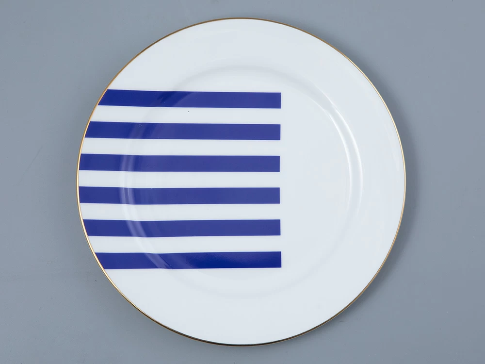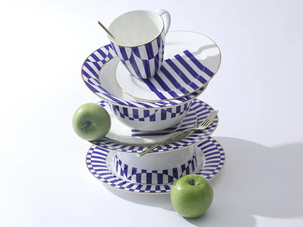 Тарелки с синими полосами будут эффектно смотреться в моноцветовой сервировке, а также хорошо сочетаются с другими цветами коллекции «Да и нет».