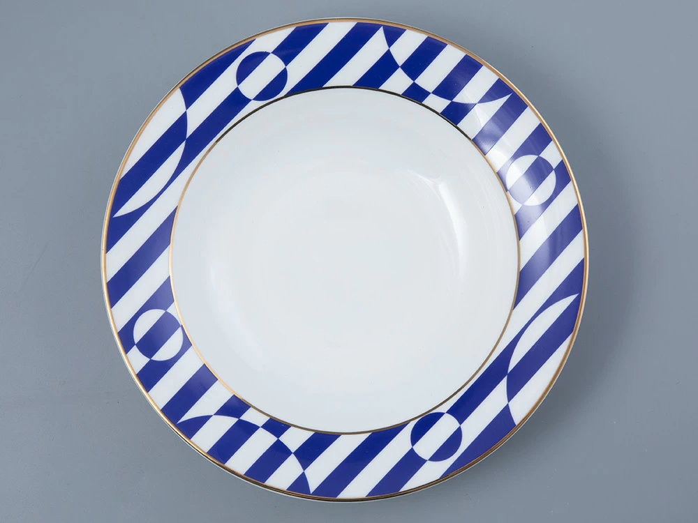 Тарелки с синими полосами будут эффектно смотреться в моноцветовой сервировке, а также хорошо сочетаются с другими цветами коллекции «Да и нет».