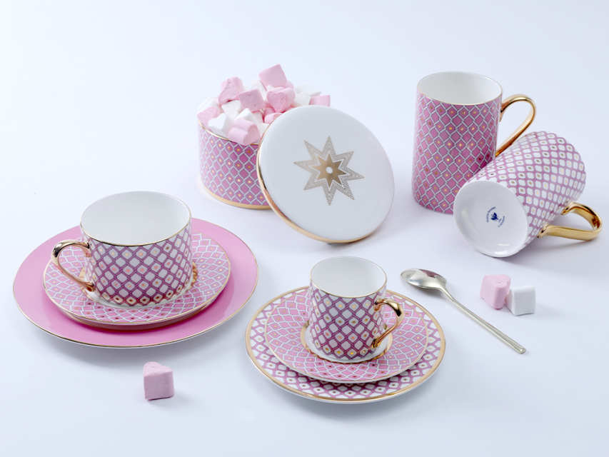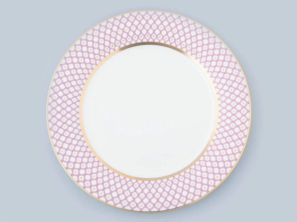 Тарелка входит в коллекцию «Астра». Нежный, благородный оттенок розового цвета, выбранный для «Астры», напоминает удивительный бриллиант «Розовая звезда». Этот драгоценный камень считается одним из самых редких и дорогих в мире. Геометрический паттерн, созданный художником Юлией Чистяковой, является оммажем на великое наследие Императорского фарфорового завода, включая Собственный сервиз Елизаветы Петровны середины XVIII века и легендарную «Кобальтовую сетку» Анны Яцкевич. Звезды, изображенные на фарфоре, предопределили название коллекции, ведь с греческого «астра» переводится как «звезда».