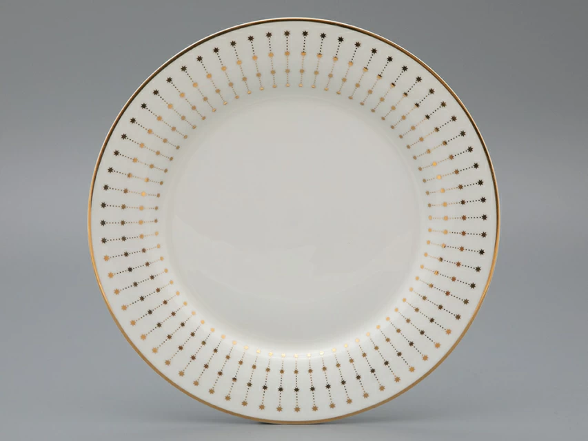 Декор обеденной тарелки «Азур золотой» вдохновлен магией новогодней ночи и красотой звездного неба. Звезды, украшающие тарелку, сделают каждую минуту особенной и подарят праздничное настроение даже в обычный день.